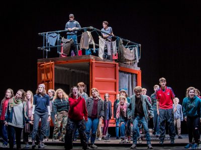 The process behind Belongings began with a simple directive from Glyndebourne – to come up with a suitable story for an opera that would place a large group of young people at the centre of the action. In this case, it was Glyndebourne itself that ultimately provided the starting point for our story – specifically, Glyndebourne’s role in the Second World War, during which it became a safe haven for a group of young evacuees from London. Laura and I were very interested in creating a story based loosely on this period in Glyndebourne’s history, which we noticed contained strong parallels with the present day. It was at this time, in early 2016, that the refugee crisis appeared to be escalating – mass drownings in the Mediterranean were an almost-daily occurrence and the population of the makeshift camp at Calais continued to grow. Though, of course, the precise experience of these refugees is far more terrible than that of those who were forced from their homes by the advent of the Second World War, there are several similarities to be observed. For example, in both circumstances, children were displaced and catapulted violently into the unknown, where they faced/are facing lingual, cultural, social and environmental barriers between themselves and their new hosts. Nevertheless, as history has shown us, considerate dialogue and gentle human connection are capable of overcoming these barriers, and it was primarily this idea that inspired the creation of Belongings. Another important idea for me was the cost of war to innocents, specifically children, who play no part in its action; with this in mind, I have included at key moments in the opera references to the Bach chorale Ein Lämmlein geht und trägt die Schuld der Welt (A lamb goes forth, bearing the sins of the world), which serves as a reminder of the cruel effects that human stubbornness and pride can have on our world’s smallest and most fragile residents.