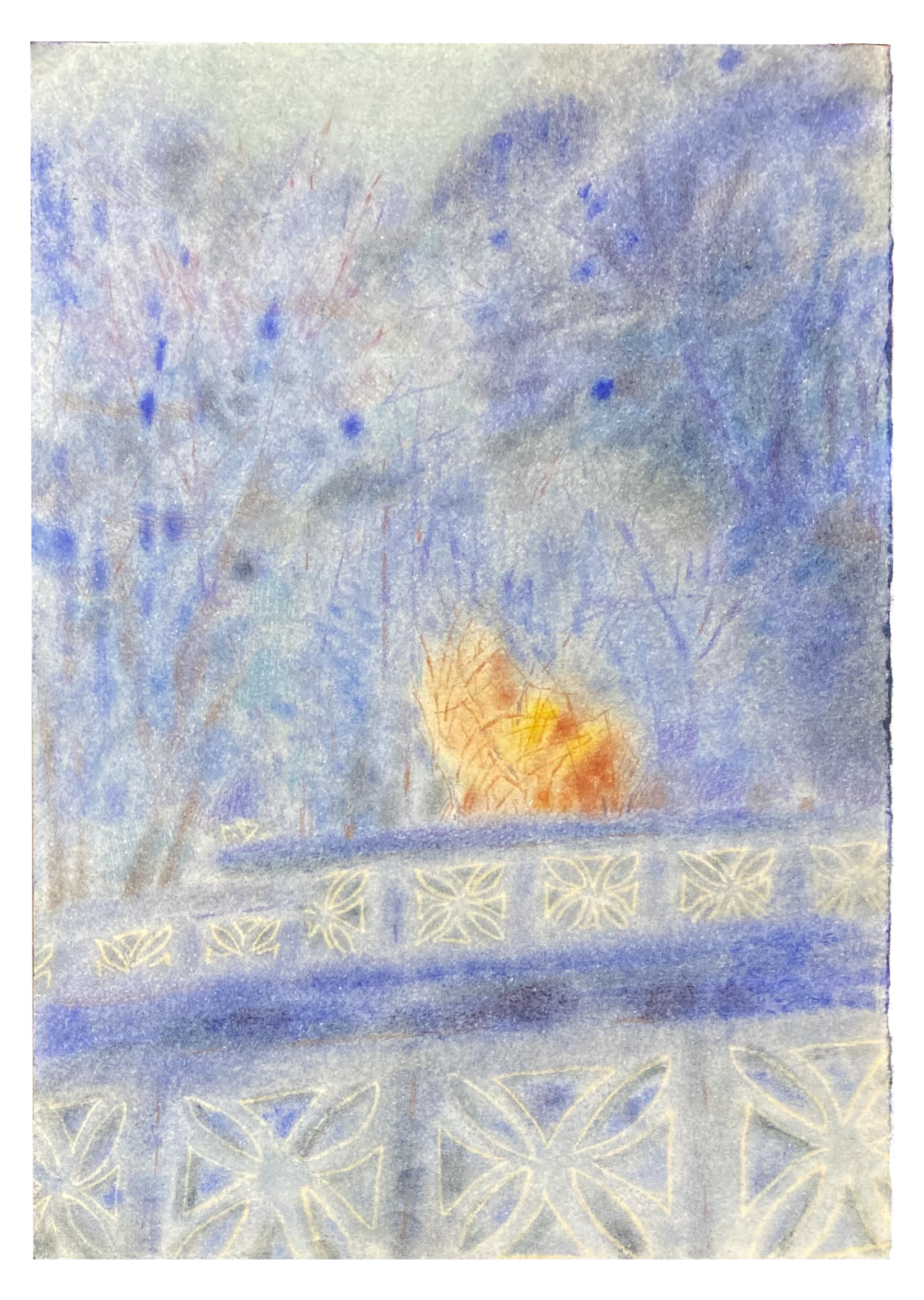 This year’s exhibition presents work by Katherine Allen, Michael Bishop, Freya Croissant, Gabriel Langlands, Tom Scotcher and Agnes Treherne. Showcasing an array of techniques and mediums, radiant landscapes sit alongside drawings that meditate on memory and quiet observation, and studies of home and human connection – a father tending a tree, a dreaming woman, couples embracing.