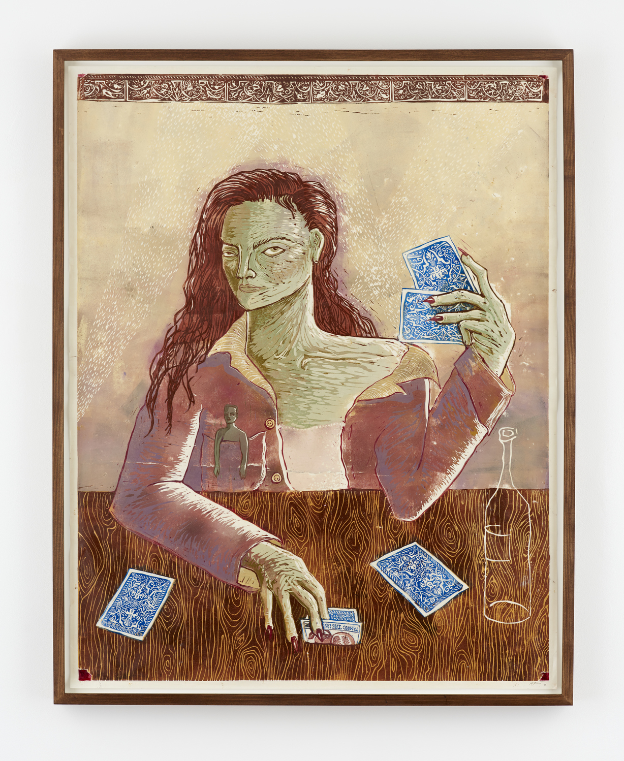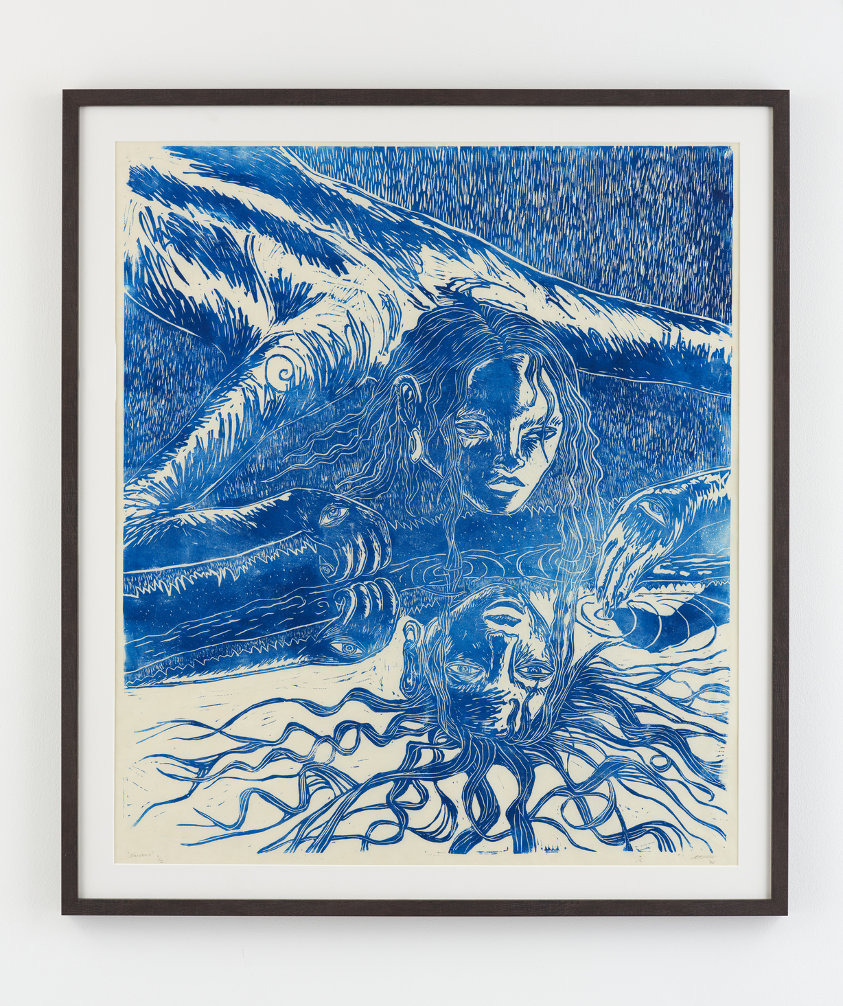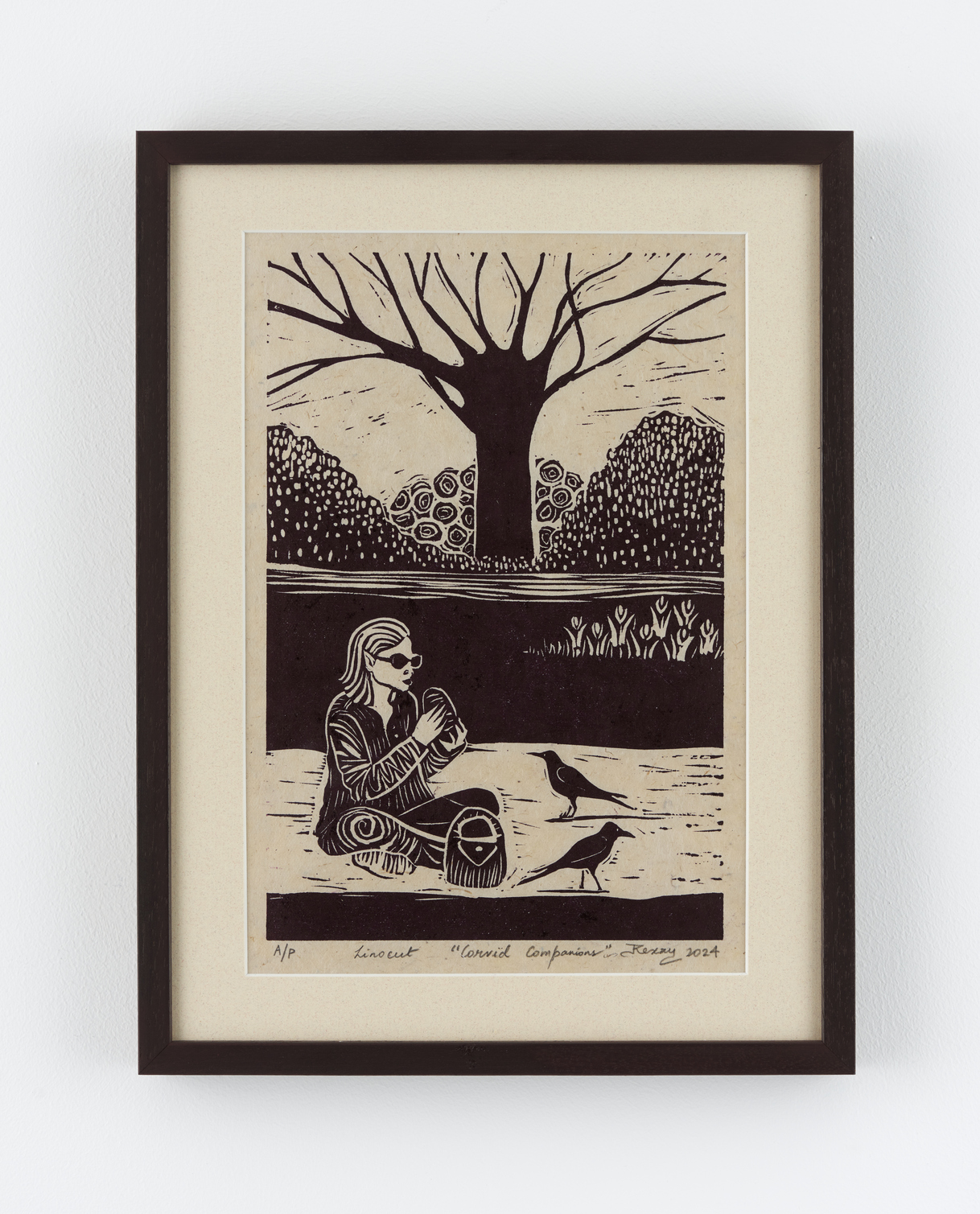 Ink on Japanese paper hand-printed linocut. Artist frame.