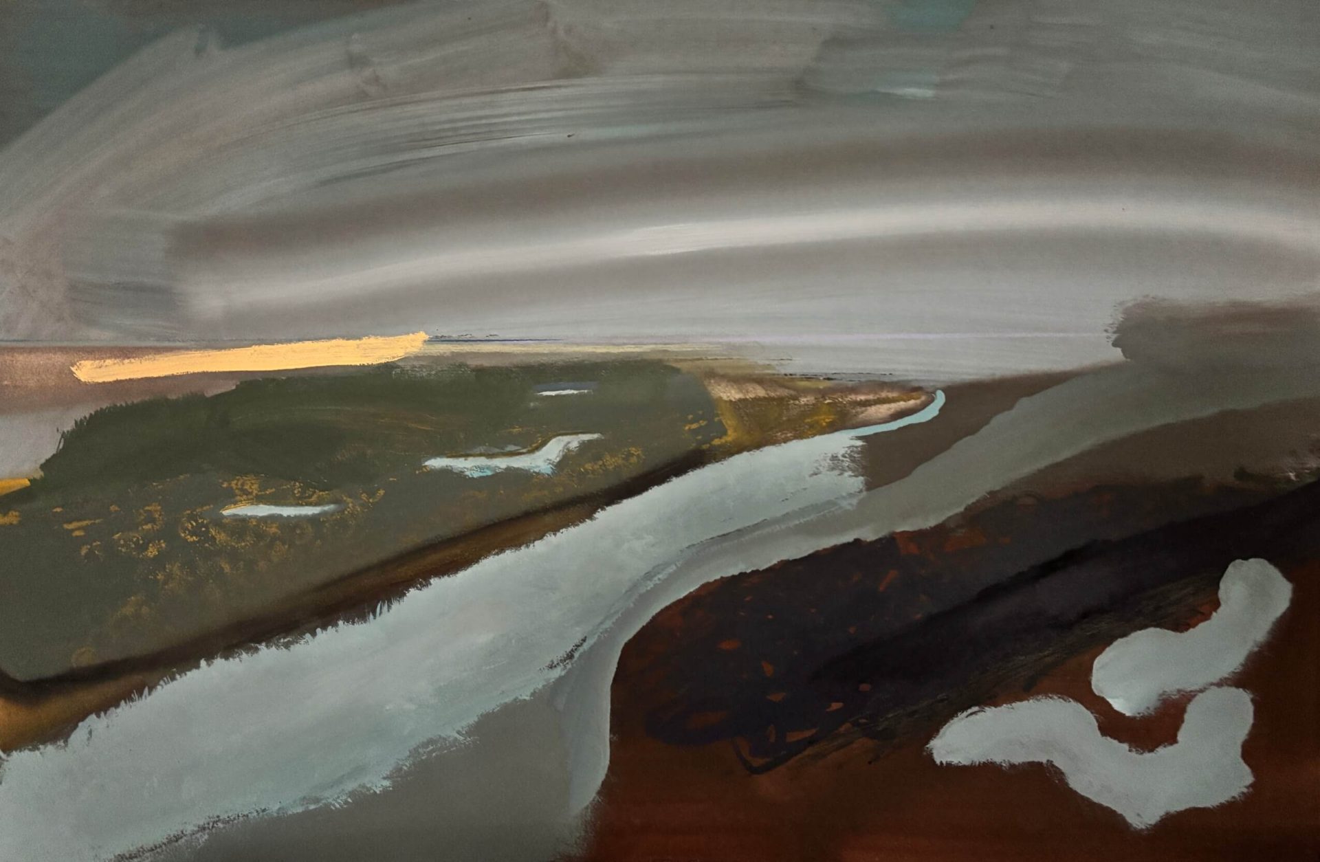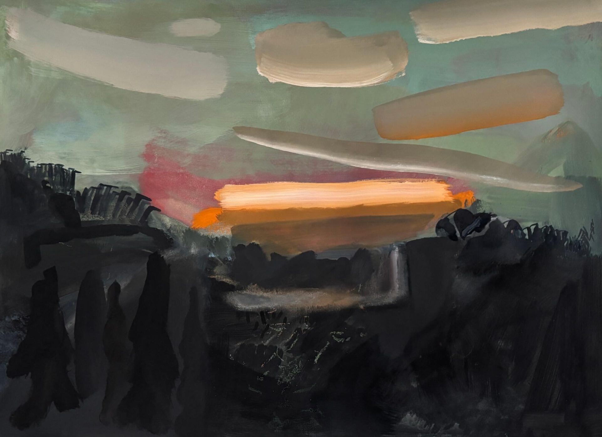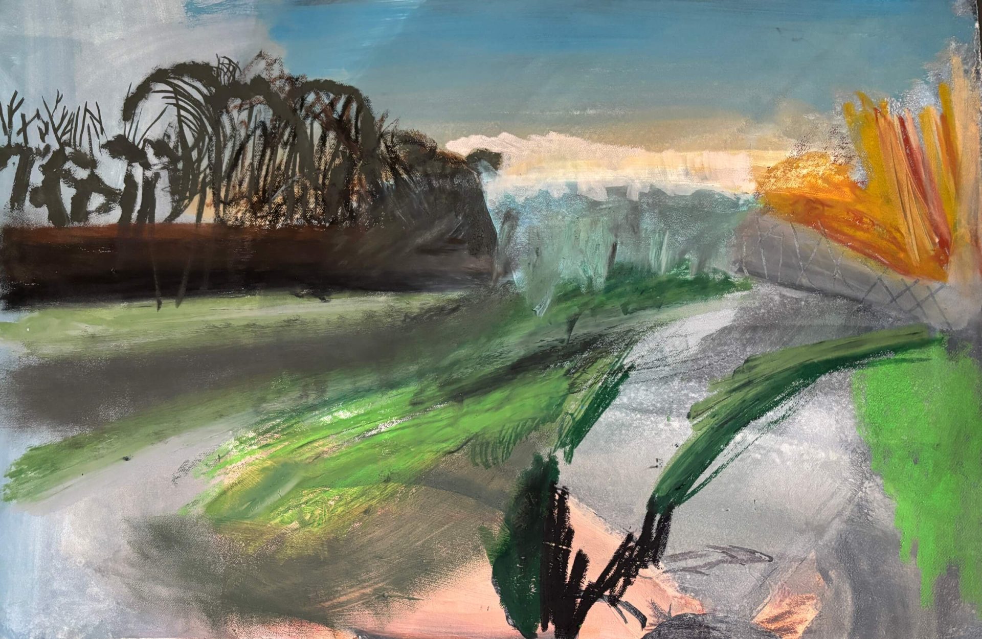 It’s impossible to see these works and not think about the legacies of twentieth-century British landscape painting – of Paul Nash and Ivon Hitchens – even the later landscape works of Edward Burra, with their intricate delineation of natural forms and sense of boundless nature. Rooted in a sustained attentiveness to place, Langland’ paintings remind us that landscape is always provisional – not a fixed view to be distilled once, but an ongoing encounter, unfolding over time.