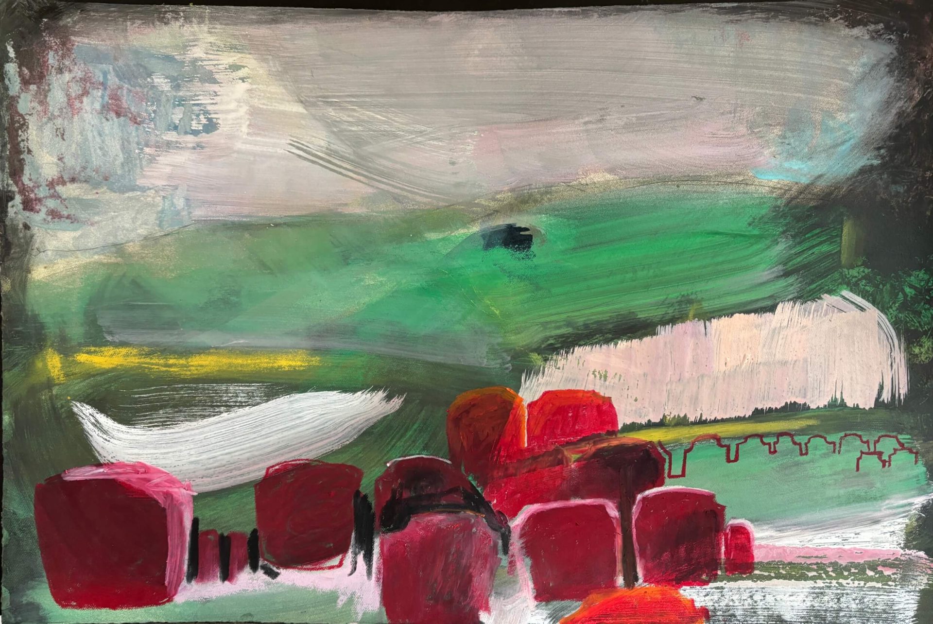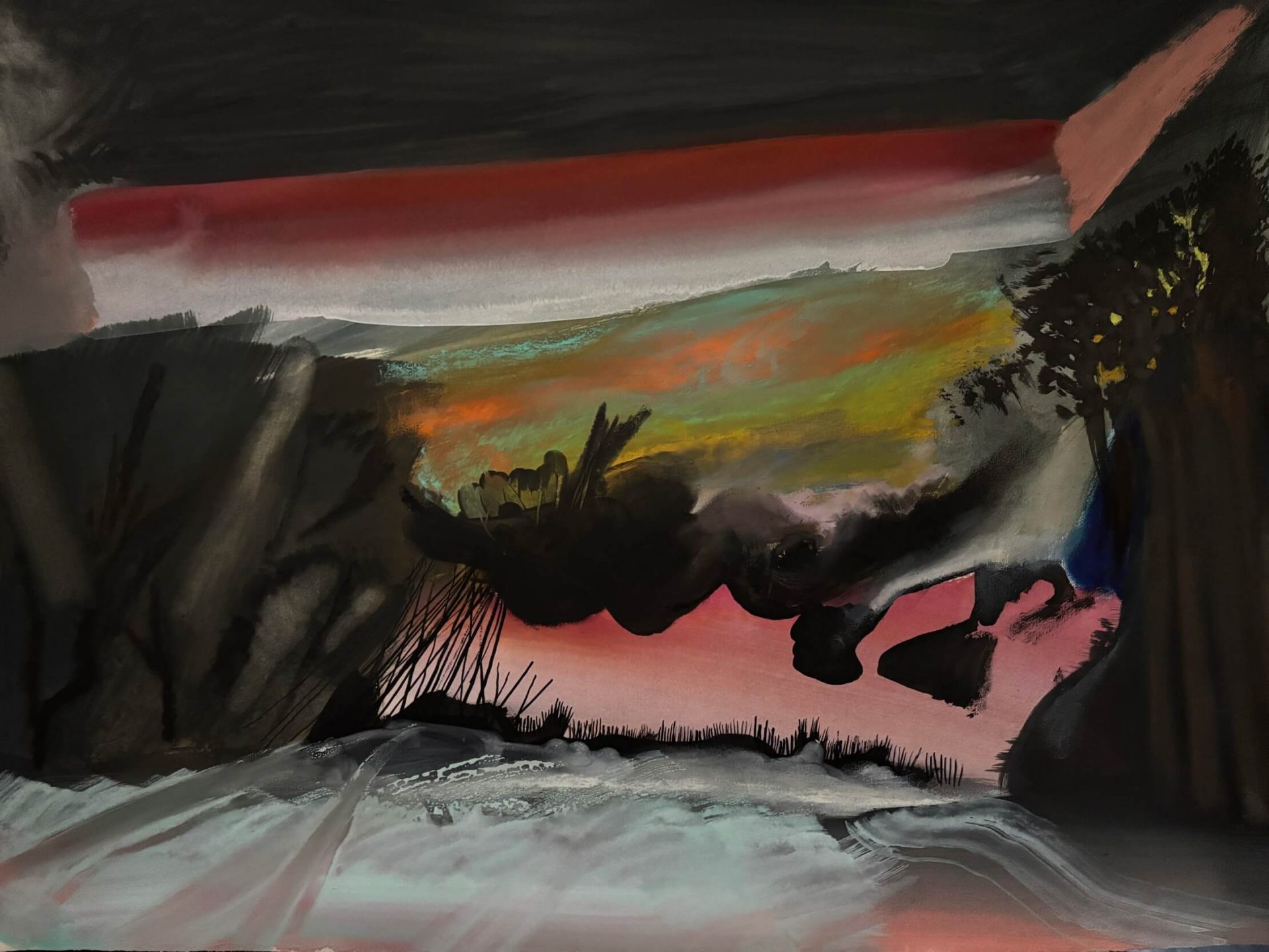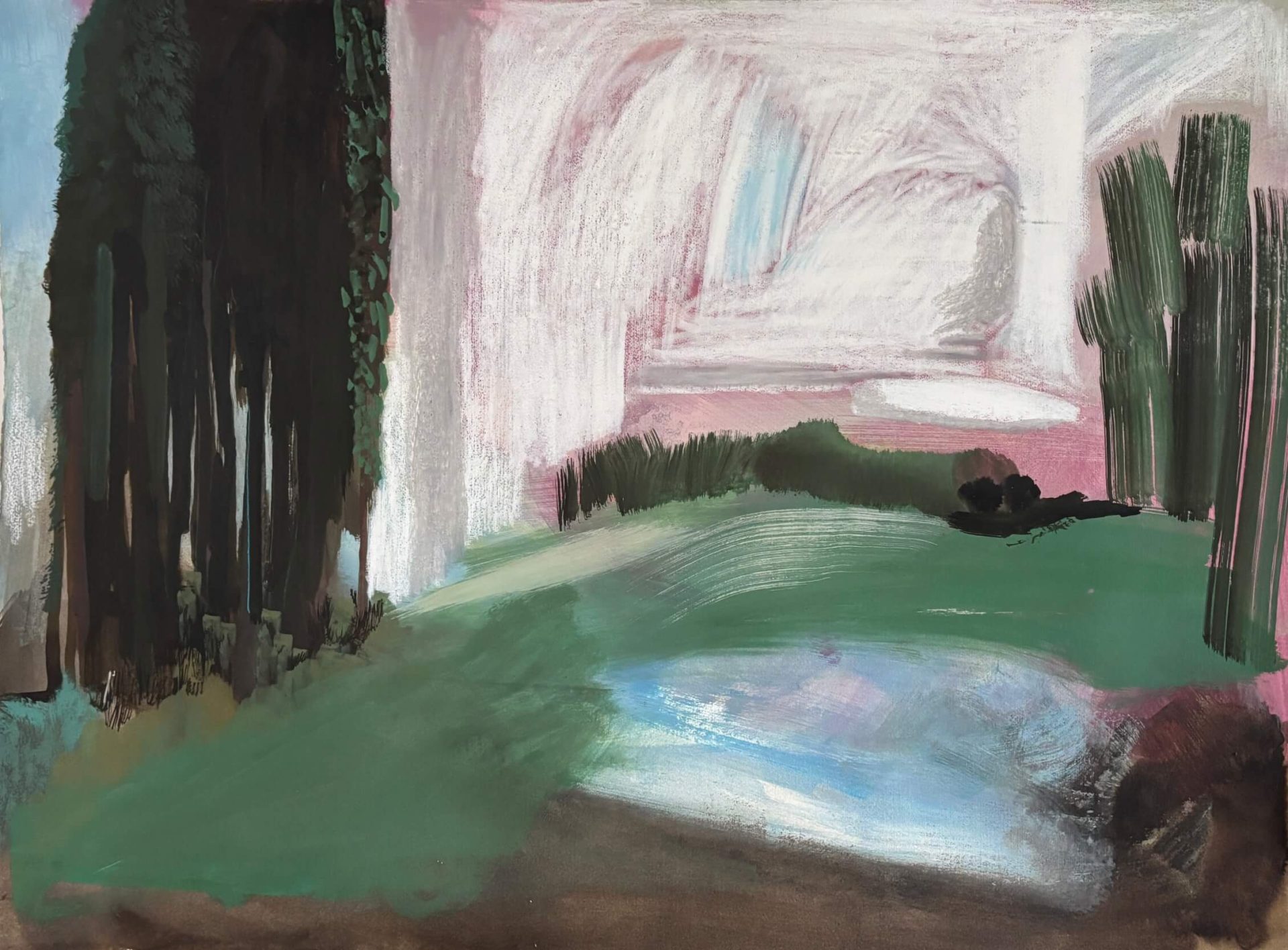 It’s impossible to see these works and not think about the legacies of twentieth-century British landscape painting – of Paul Nash and Ivon Hitchens – even the later landscape works of Edward Burra, with their intricate delineation of natural forms and sense of boundless nature. Rooted in a sustained attentiveness to place, Langland’ paintings remind us that landscape is always provisional – not a fixed view to be distilled once, but an ongoing encounter, unfolding over time.
