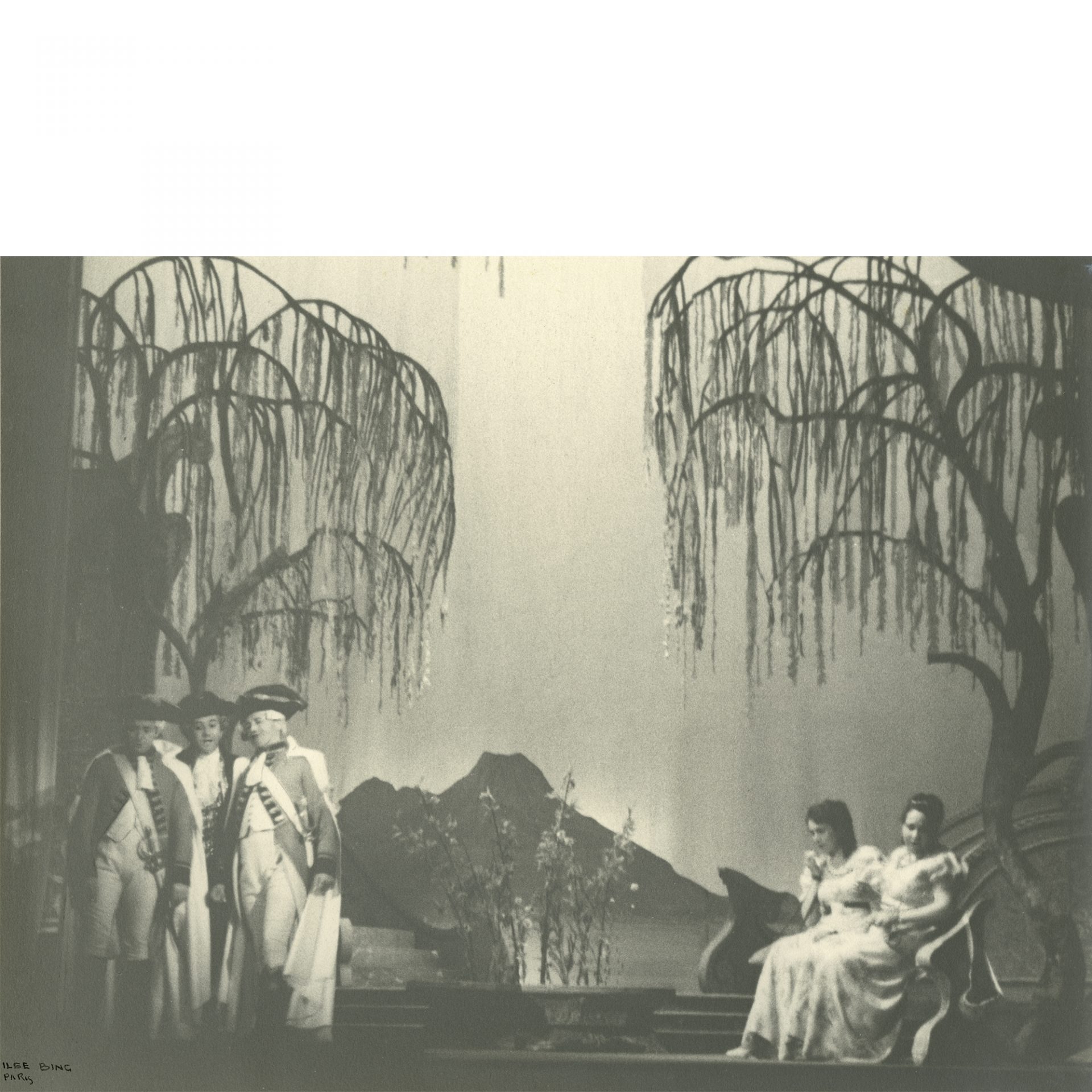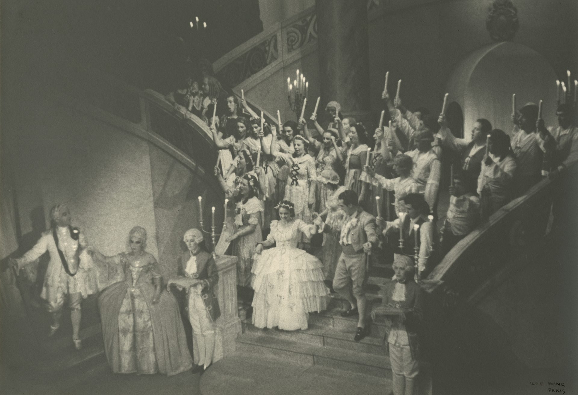 When Bing arrived at Glyndebourne, she was already well-versed in capturing and photographing live theatre performance, with her dynamic images of can-can dancers at the Moulin Rouge, Paris in 1931 being of particular significance. At the time, Glyndebourne, still in its infancy, was already actively acquiring photographic documentation of all its productions. Ilse Bing marks the first female photographer to photograph opera at Glyndebourne.