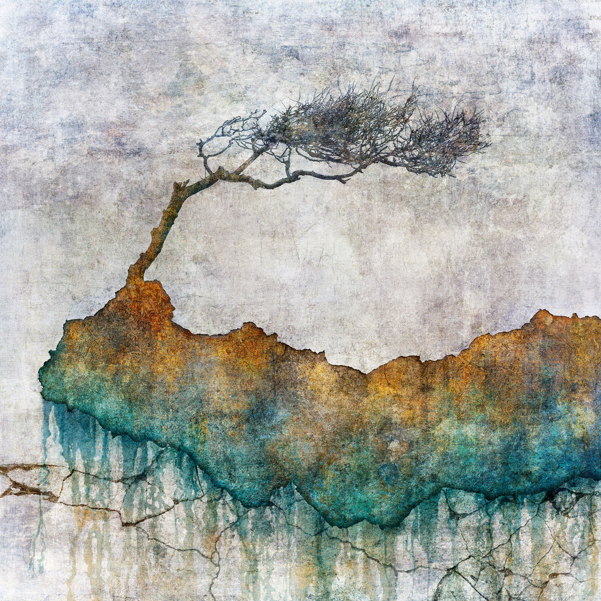 Sumi, oil and tea pigments on canvas