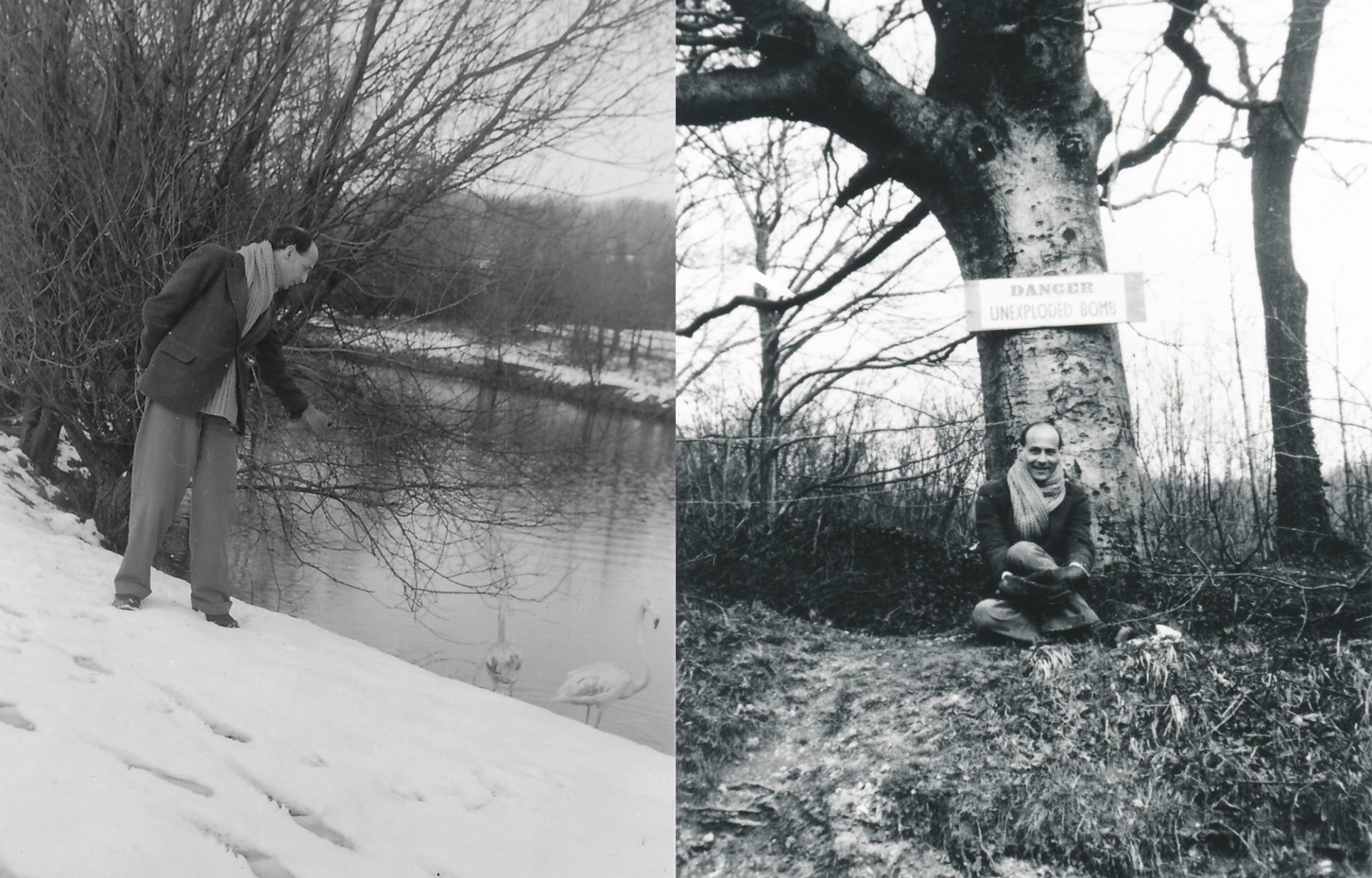 Photographed here with Glyndebourne’s General Manager, Rudolf Bing in the winter of 1941, the flamingos were evacuated from London Zoo during the war. Though unfortunately, letters in the archive from John Christie suggest that the foxes appreciated the rehoming of the flamingos more than anyone else.