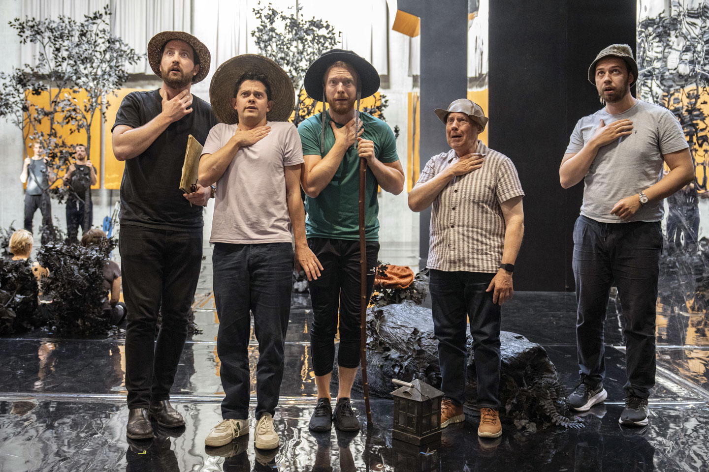Michael Ronan (Quince), James Way (Flute), Alex Otterburn (Starveling), Alasdair Elliott (Snout), and Jamie Woollard (Snug)