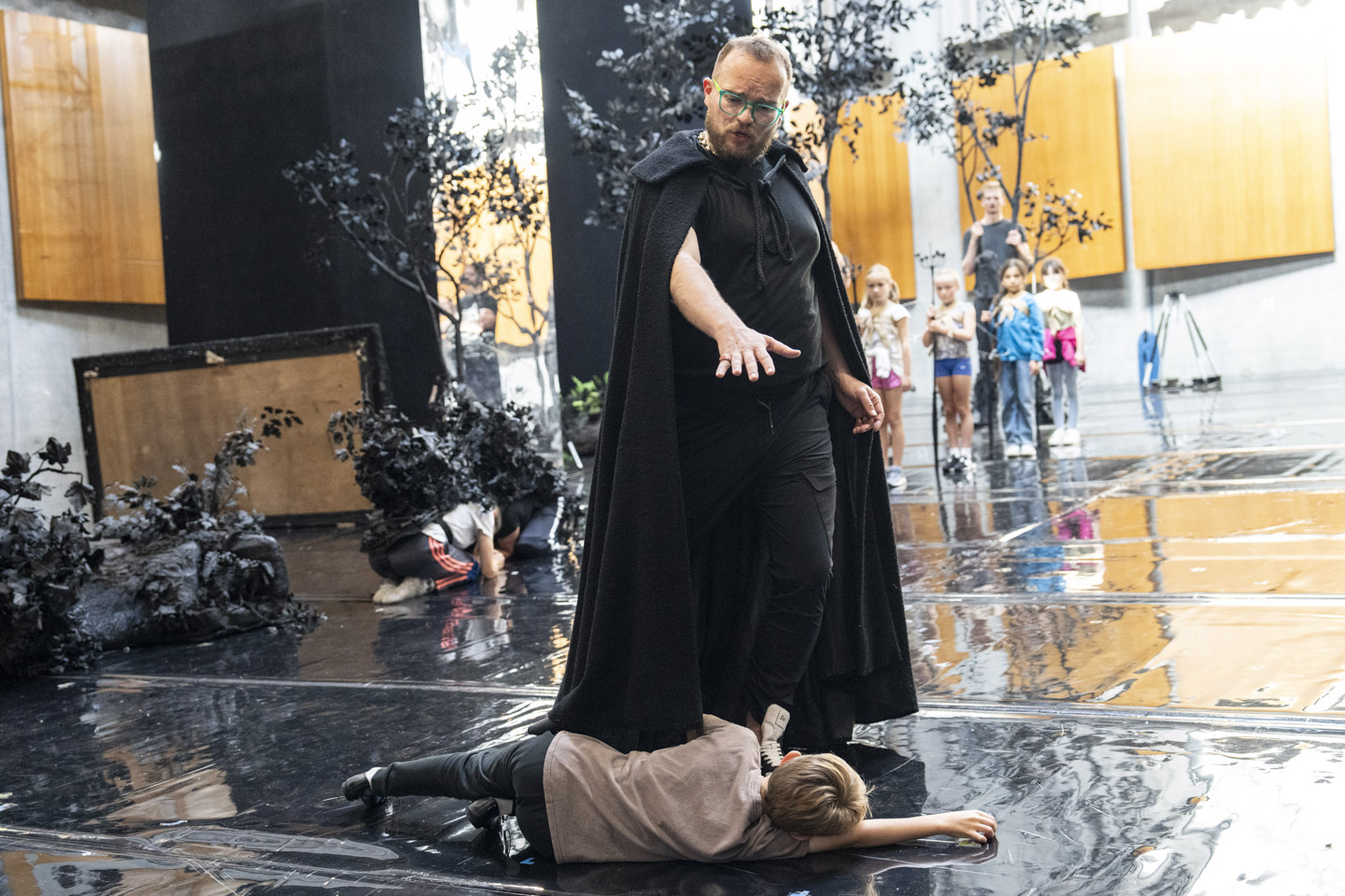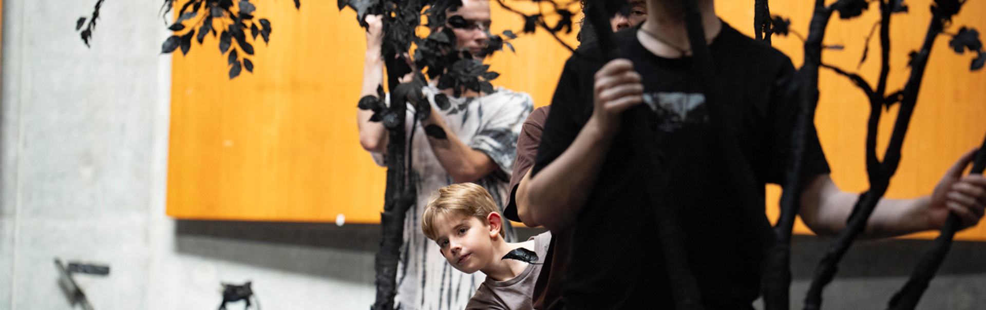 Joshua Fowler (Puck) and members of Glyndebourne Youth Opera and Trinity Boys Choir