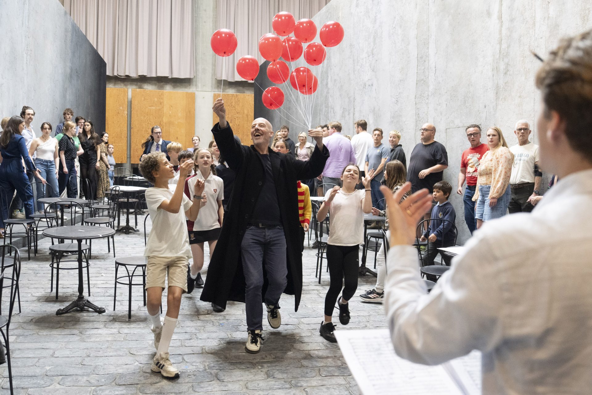 Adam Hickox (conductor), Rachael Hewer (revival director) and members of the Glyndebourne Chorus and Glyndebourne Youth Opera