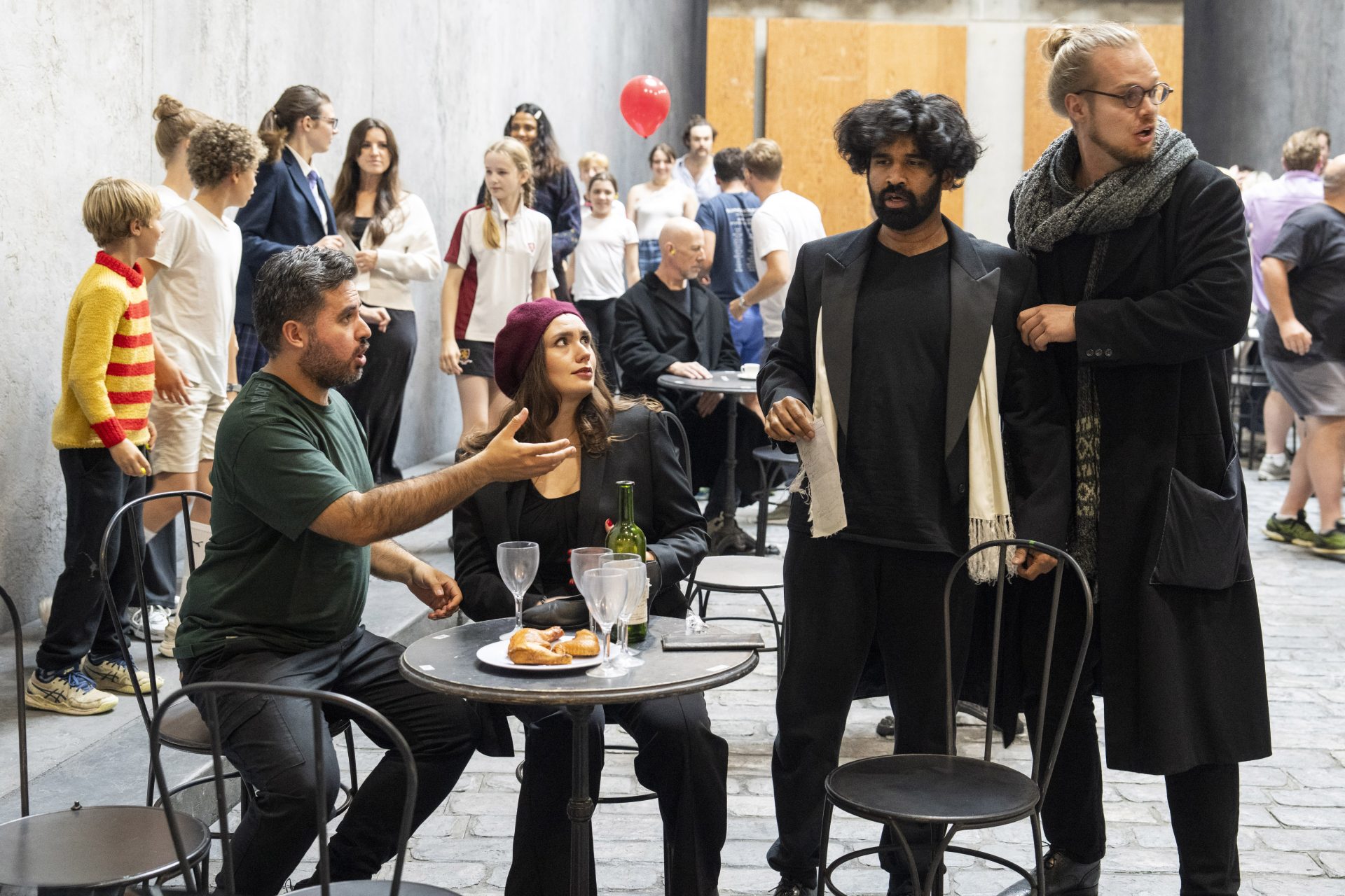 Darwin Prakash (Schaunard), Markus Suihkonen (Colline), Aksel Daveyan (Marcello) and Camilla Harris (Musetta)