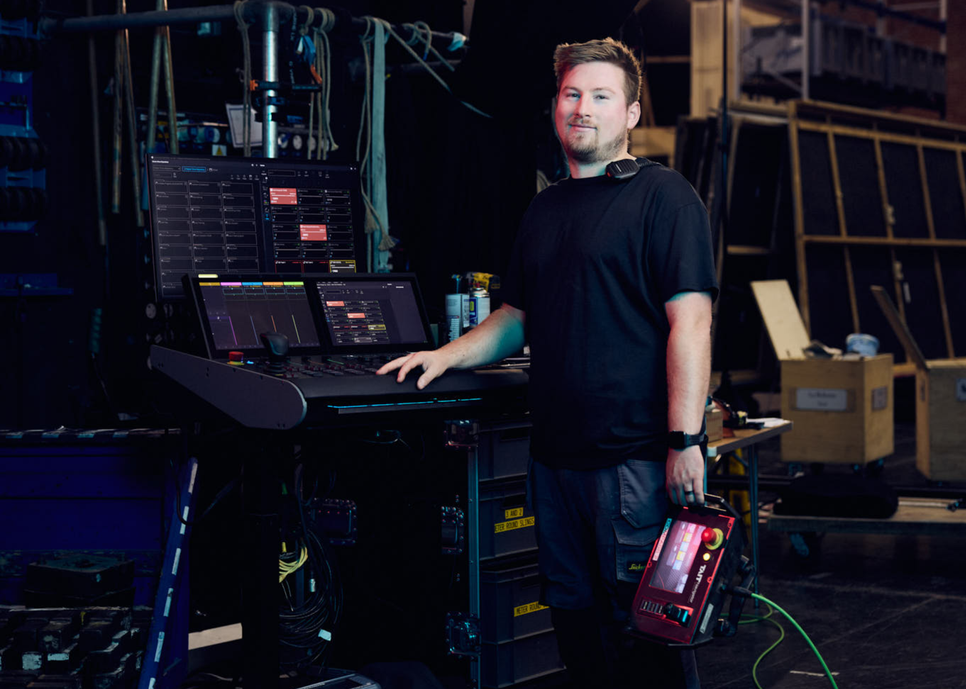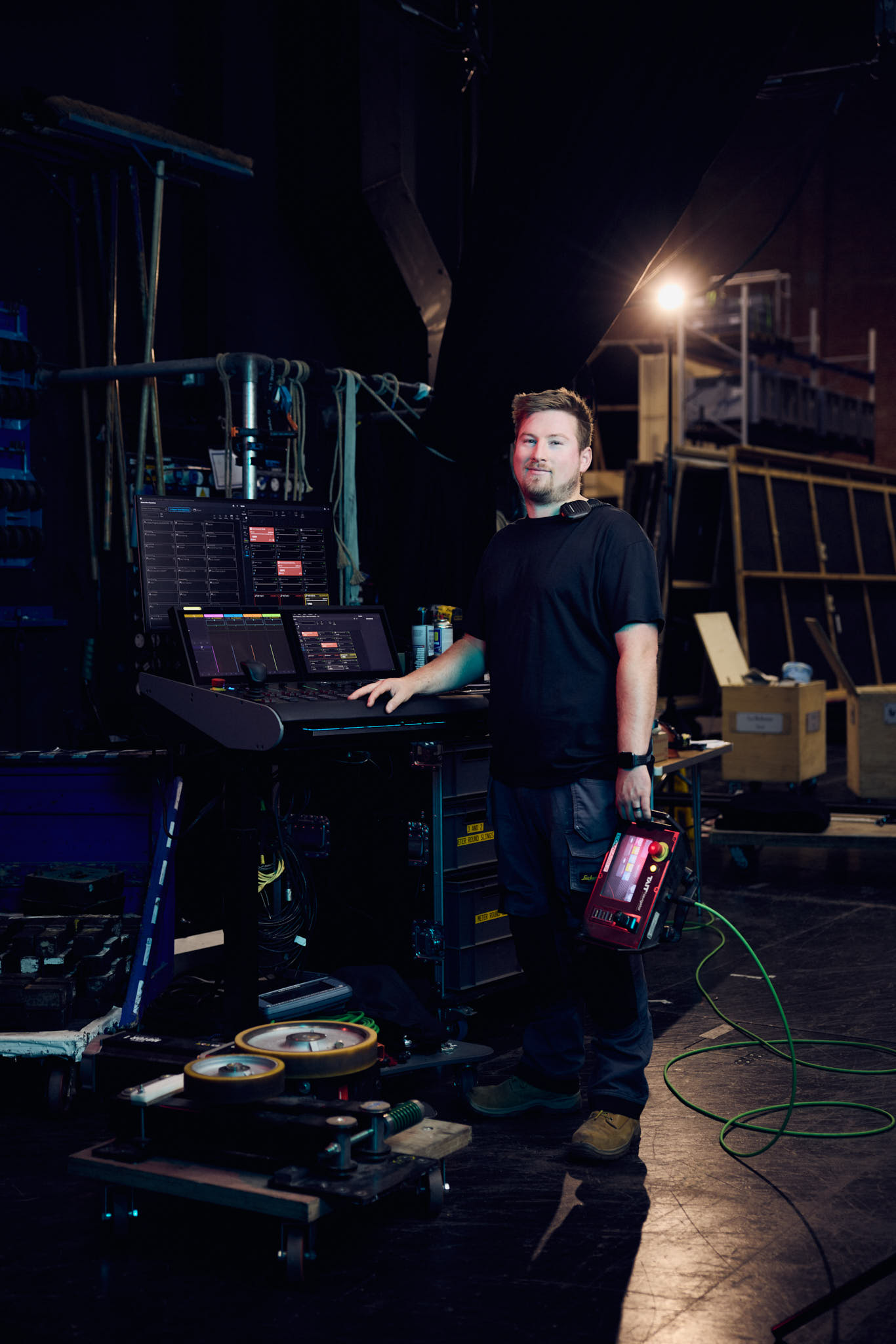 His role merges engineering skills with artistic collaboration to safely and repeatedly execute complex scenic changes and visual effects.