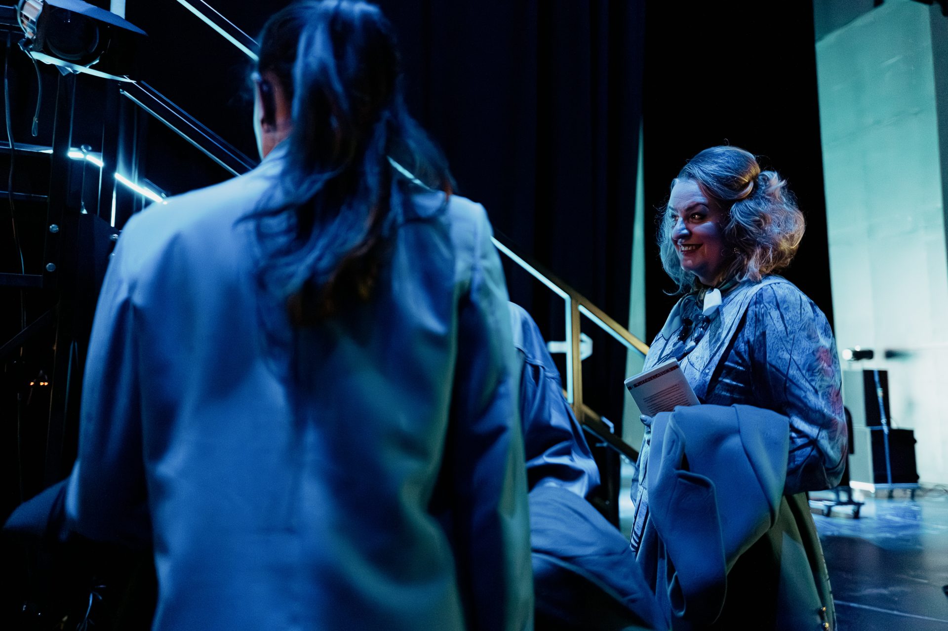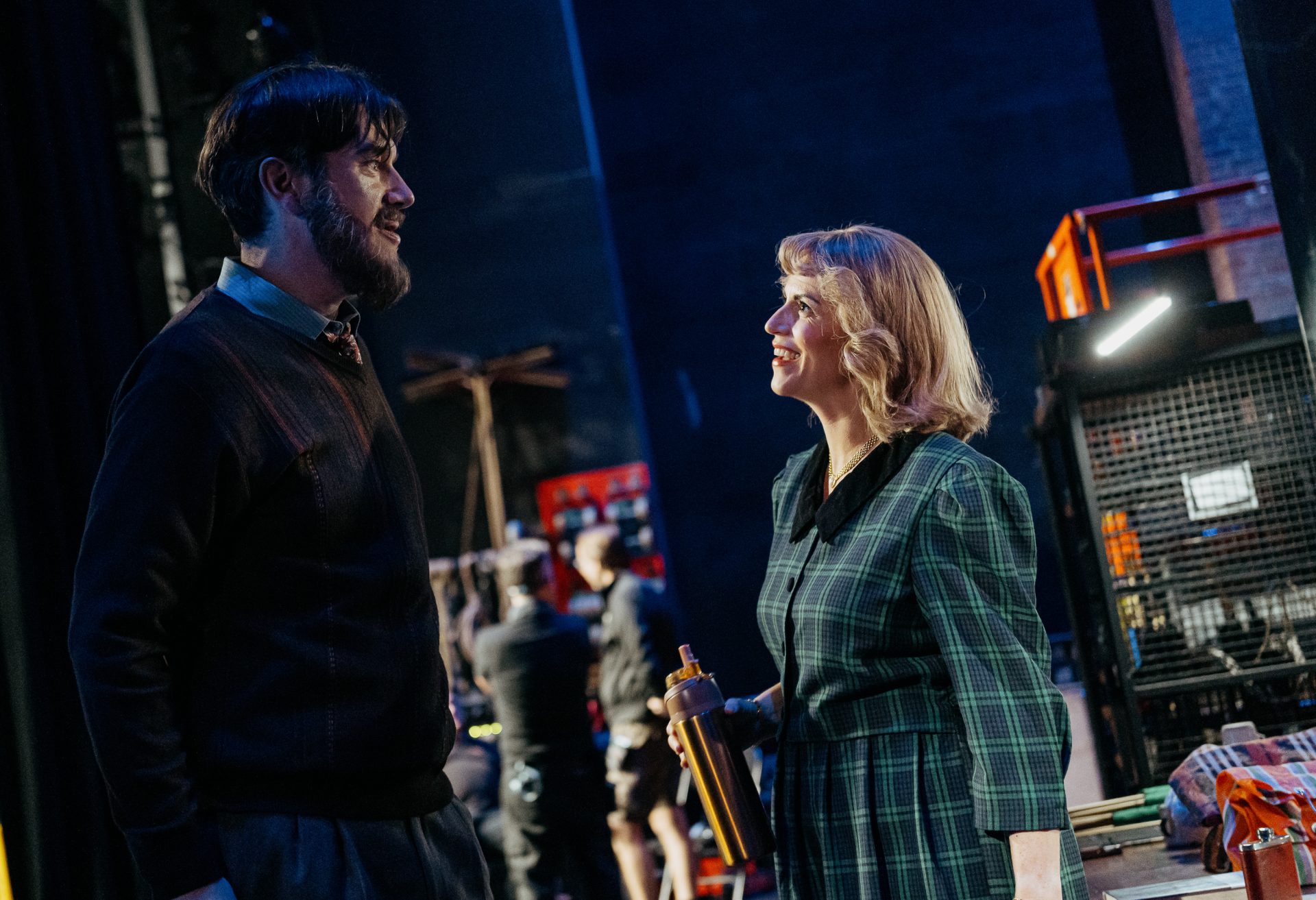 Edward Hawkins (Mr Tarpolski) and Rachael Lloyd (Cathy) waiting backstage