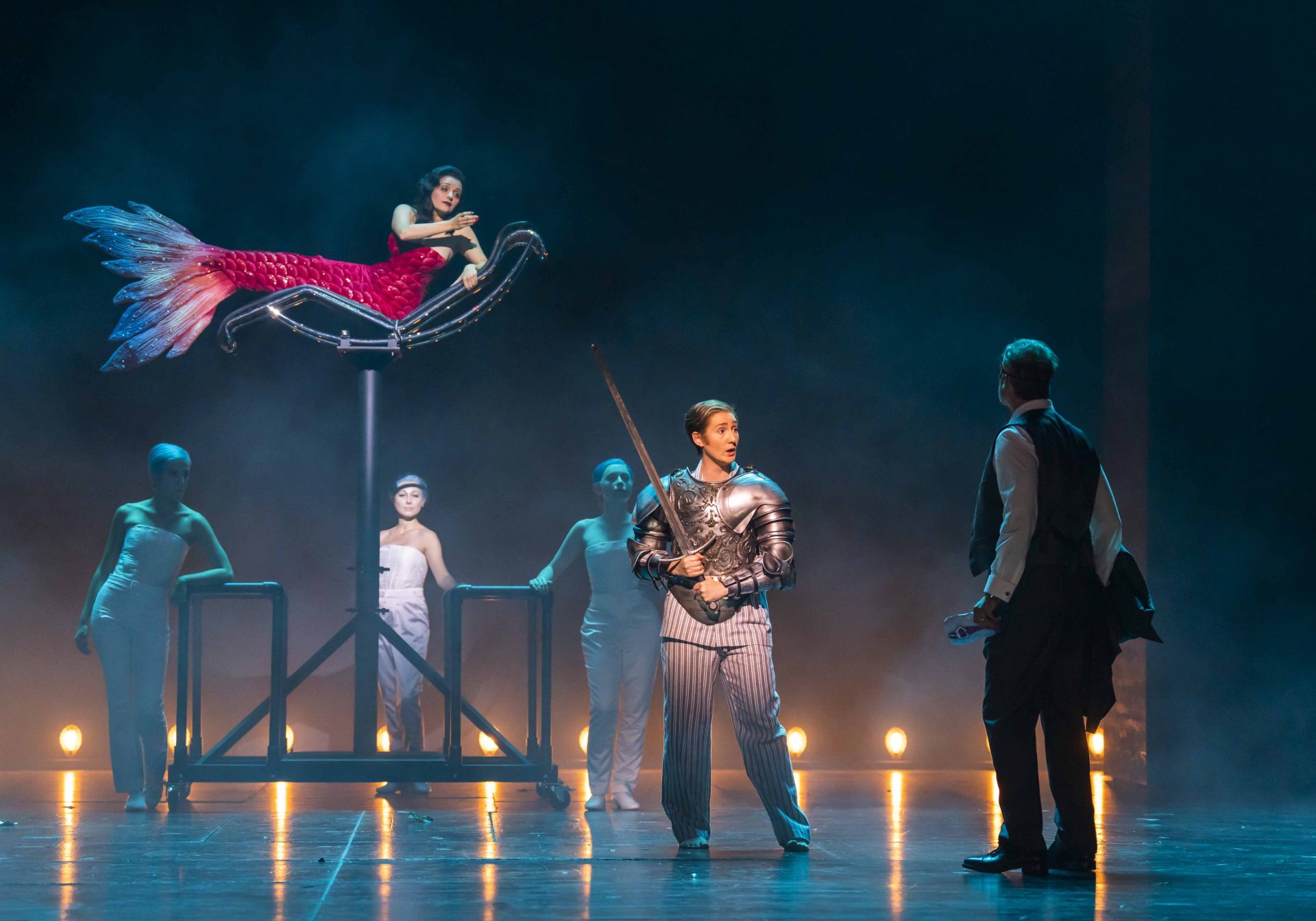 Morgana (Soraya Mafi), Ruggiero (Samantha Hankey) and Astolfo (James Cleverton)