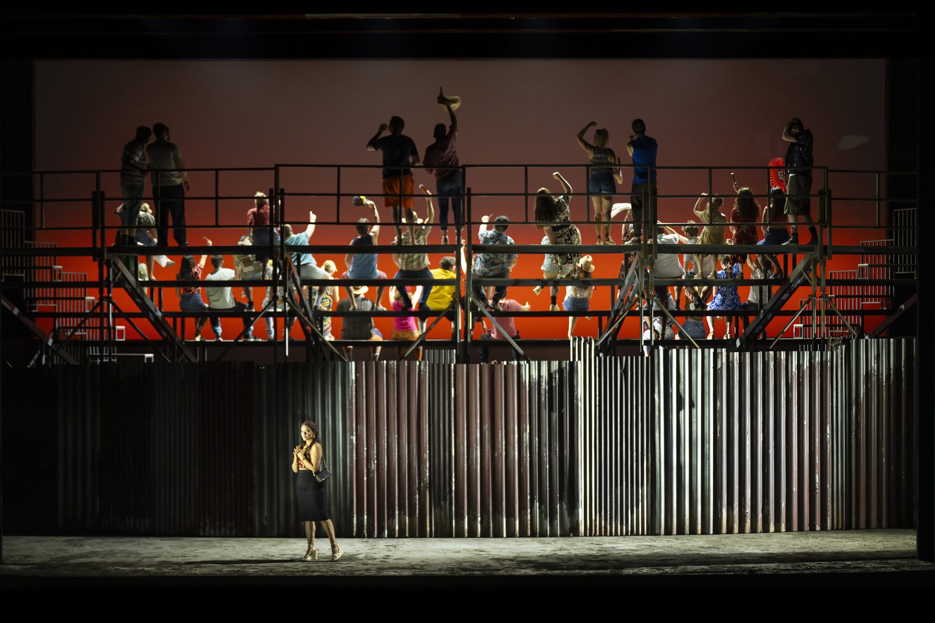 Rihab Chaieb (Carmen) and Glyndebourne Chorus.