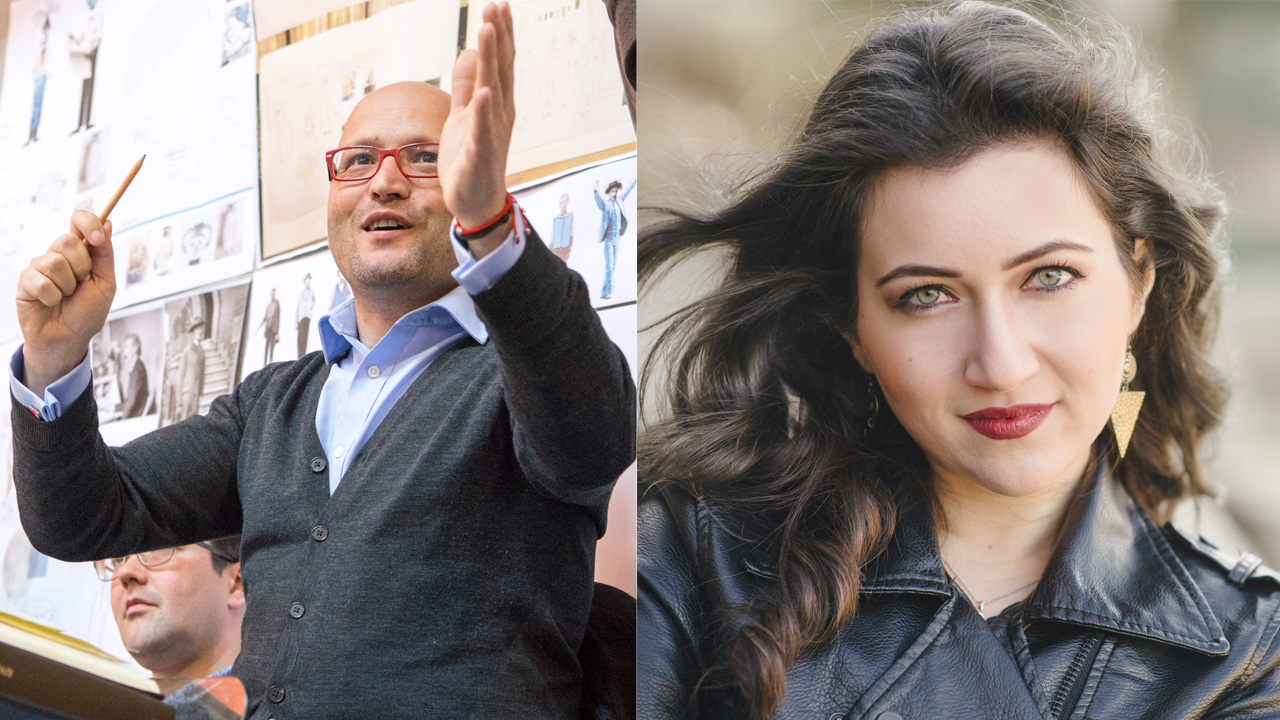 Conductor Enrique Mazzola, photo by Richard Hubert Smith / Mané Galoyan, photo by Simon Pauly