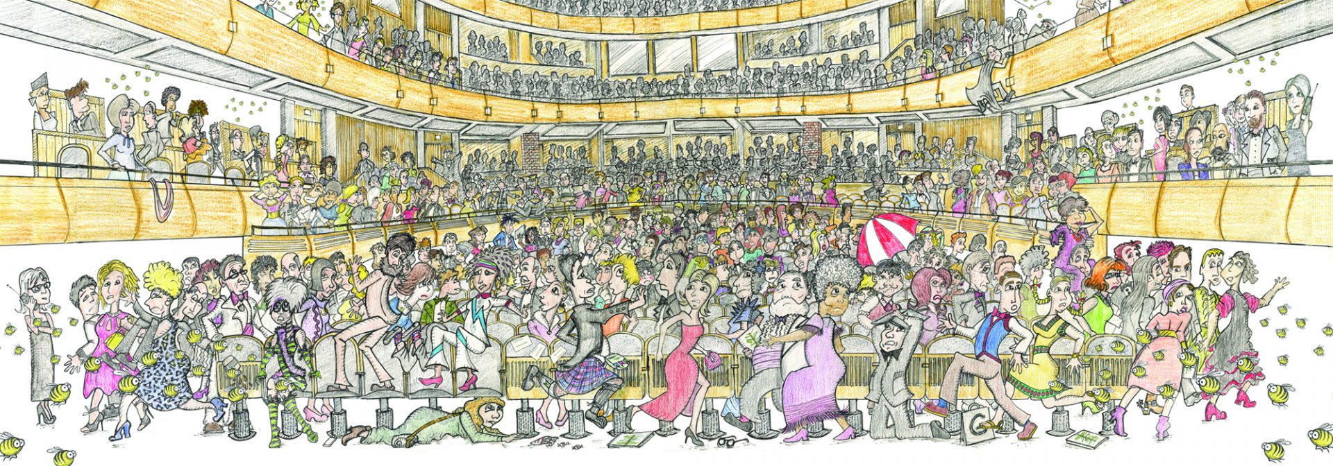 Rich has always drawn for pleasure, but The Mulberry Bees is his first venture into publishing. The illustrations are all done by hand on acrylic paper using ink and watercolour pencils. The pictures are filled with tiny details and many references to Glyndebourne’s past and present, including the original set from the 1934 production of The Marriage of Figaro. Bethany explains, ‘We thought it would be fun to include elements that well-seasoned Glyndebourne aficionados could enjoy discovering when reading The Mulberry Bees to their children or grandchildren’.