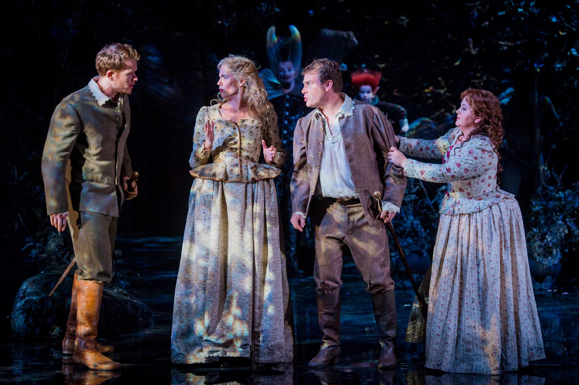Demetrius (Duncan Rock), Helena (Kate Royal), Lysander (Benjamin Hulett) and Hermia (Elizabeth DeShong), A Midsummer Night’s Dream, Glyndebourne Festival 2016. Photo: Robert Workman