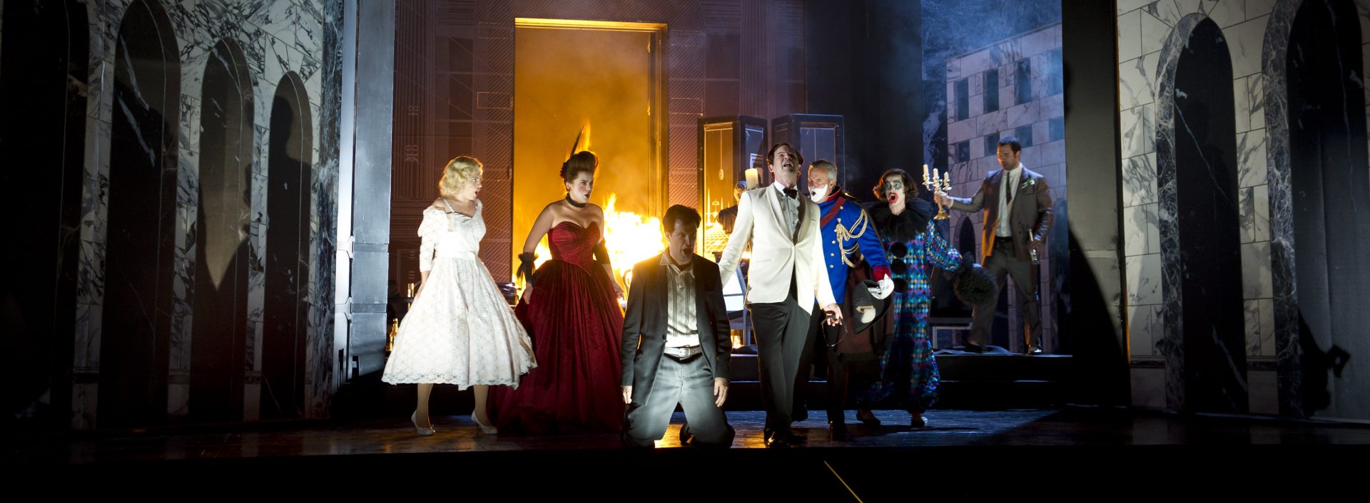 Jonathan Kent’s 2010 production – ‘a magnificent reinvention’ updates Mozart’s setting from 18th-century Spain to the 1950s – a world of Hitchcock and Fellini and the French New Wave. A dark, labyrinth-like set ‘looks a million dollars’ in Paul Brown’s ‘ingenious’ geometric designs, whose oversized, illusory structures evoke both Escher and de Chirico. Praised by the critics as ‘taut and lean’, this ambiguous, elegantly sinister staging ‘gives the audience plenty to chew on’.