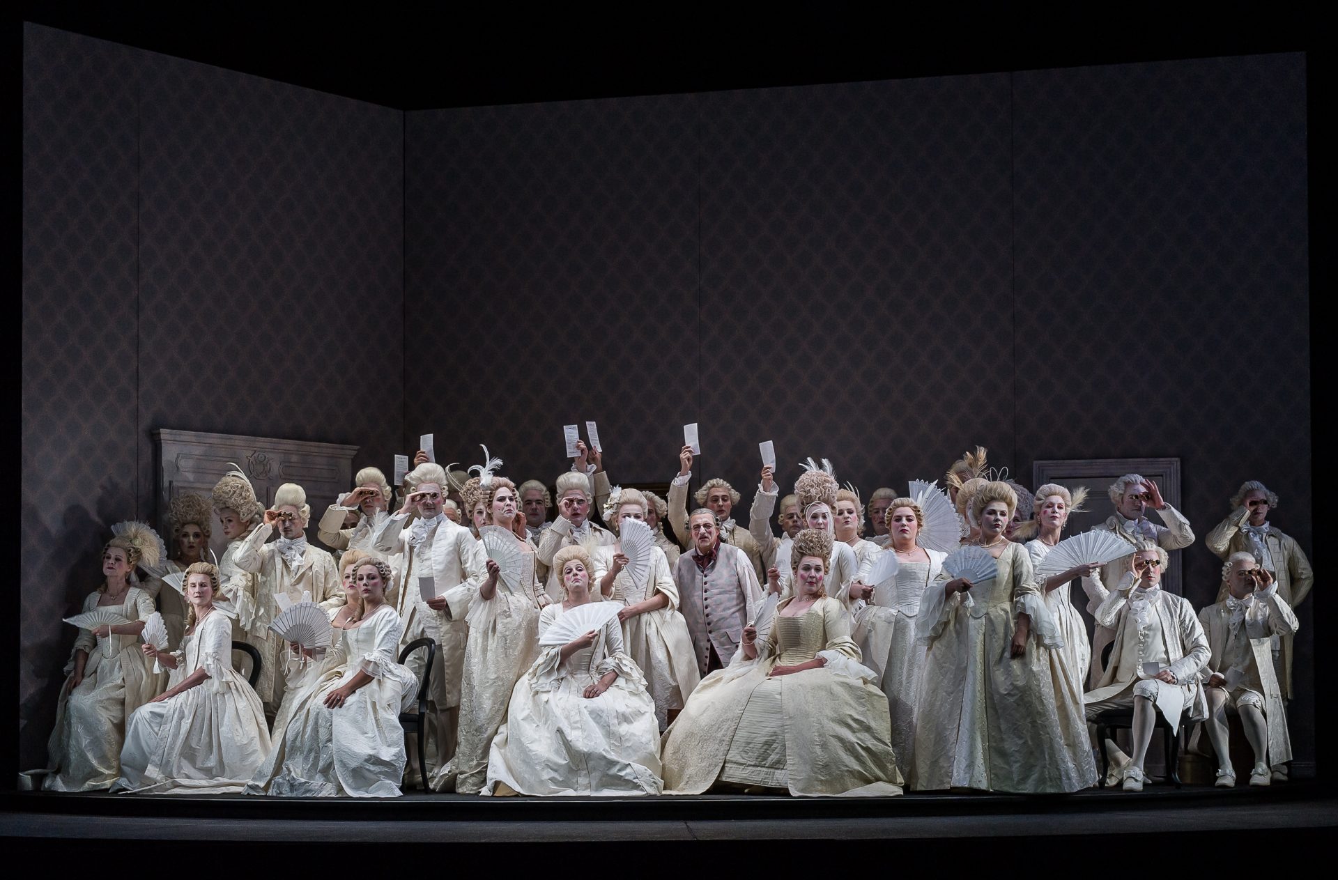 Mariame Clément’s darkly ‘astute’ staging (‘hitting the mark with sure but unemphatic touch’) moves Donizetti’s action back in time – from the 19th-century to the 18th, with its sumptuous wigs, dresses and interiors. Julia Hansen’s elegant designs provide a period dolls house to frame action with contemporary psychological edge: ‘buffa as blood sport’, as one critic described it.