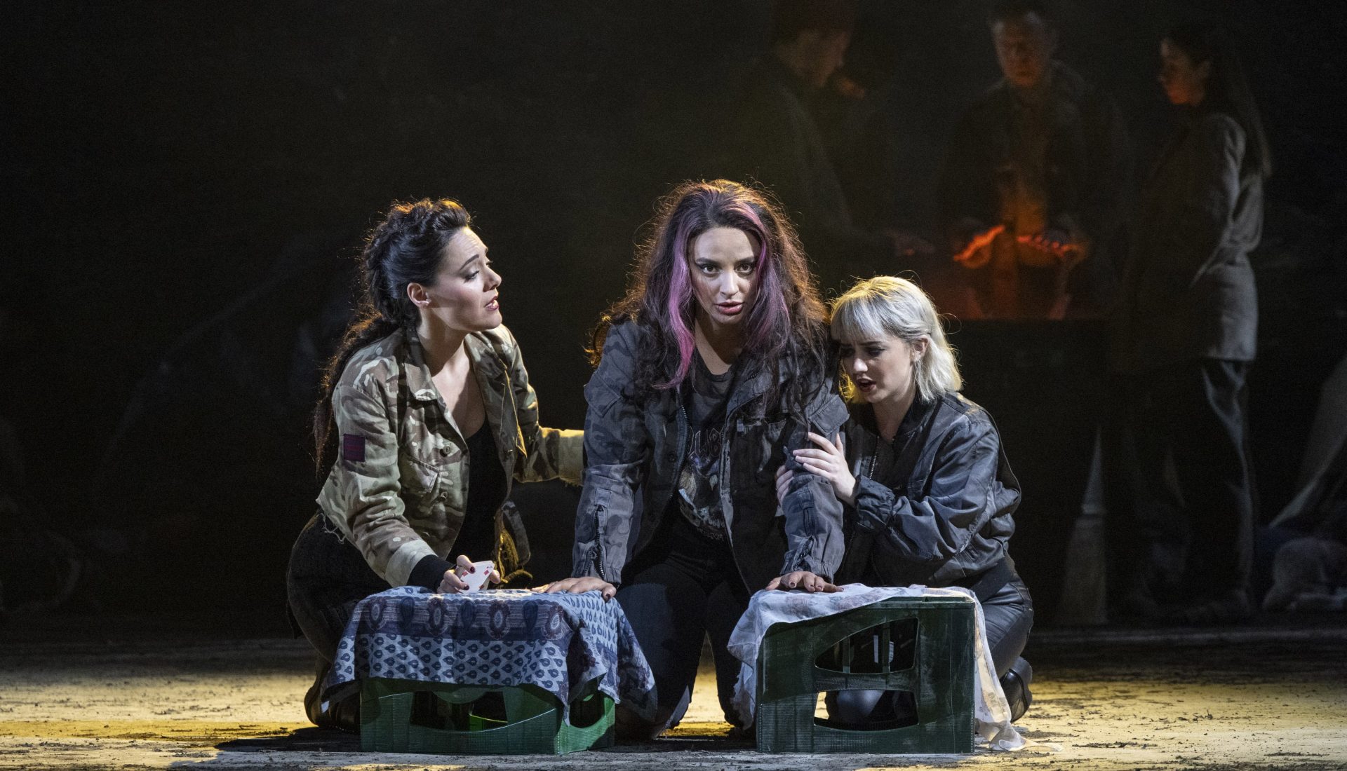Kezia Bienek (Mercédès), Rihab Chaieb (Carmen), and Elisabeth Boudreault (Frasquita) in Carmen. Photography: Richard Hubert Smith
