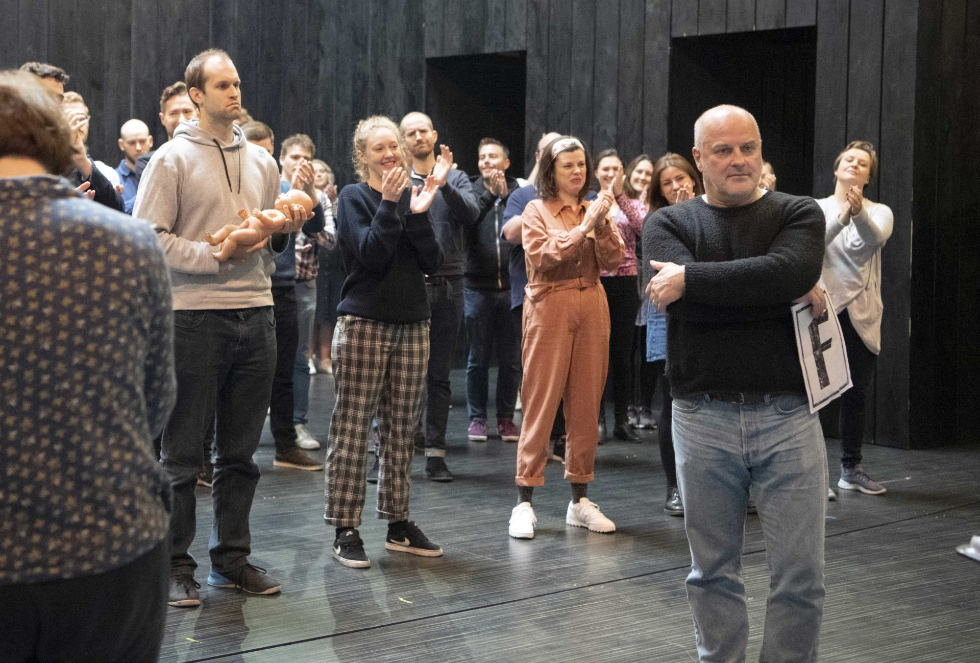 Associate director/Movement Director Sarah Fahie, Christopher Purves (Méphistophélès) and Glyndebourne Chorus