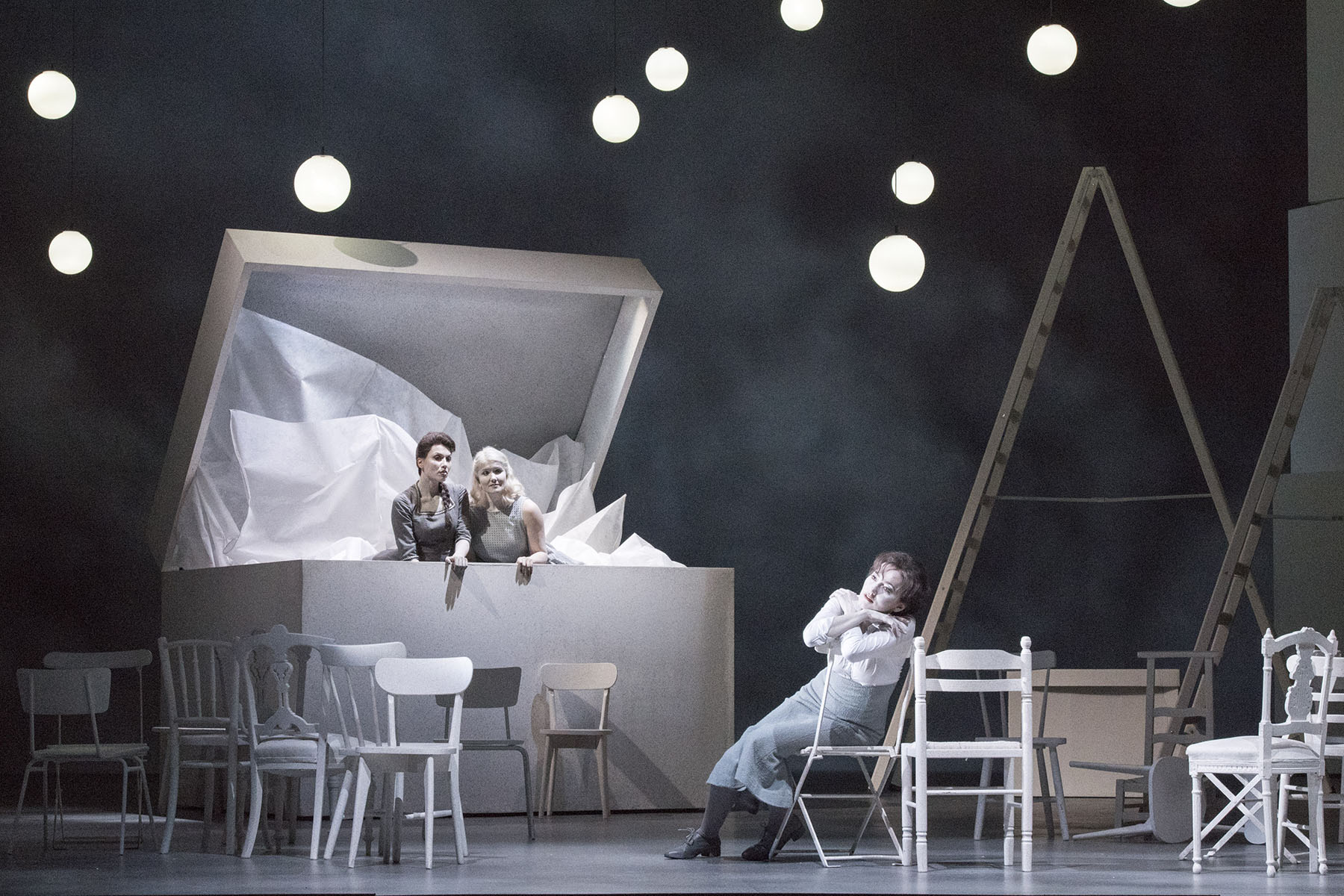 Pelly reunited with Stephanie d’Oustrac (who played Béatrice) for the first full staging of Berlioz’s Béatrice et Bénédict at Glyndebourne. Pelly’s production, with minimalist sets and greyscale colour palette evoked vintage black and white wedding photos, and was called ‘modernistic and often daring’ by The Arbuturian.