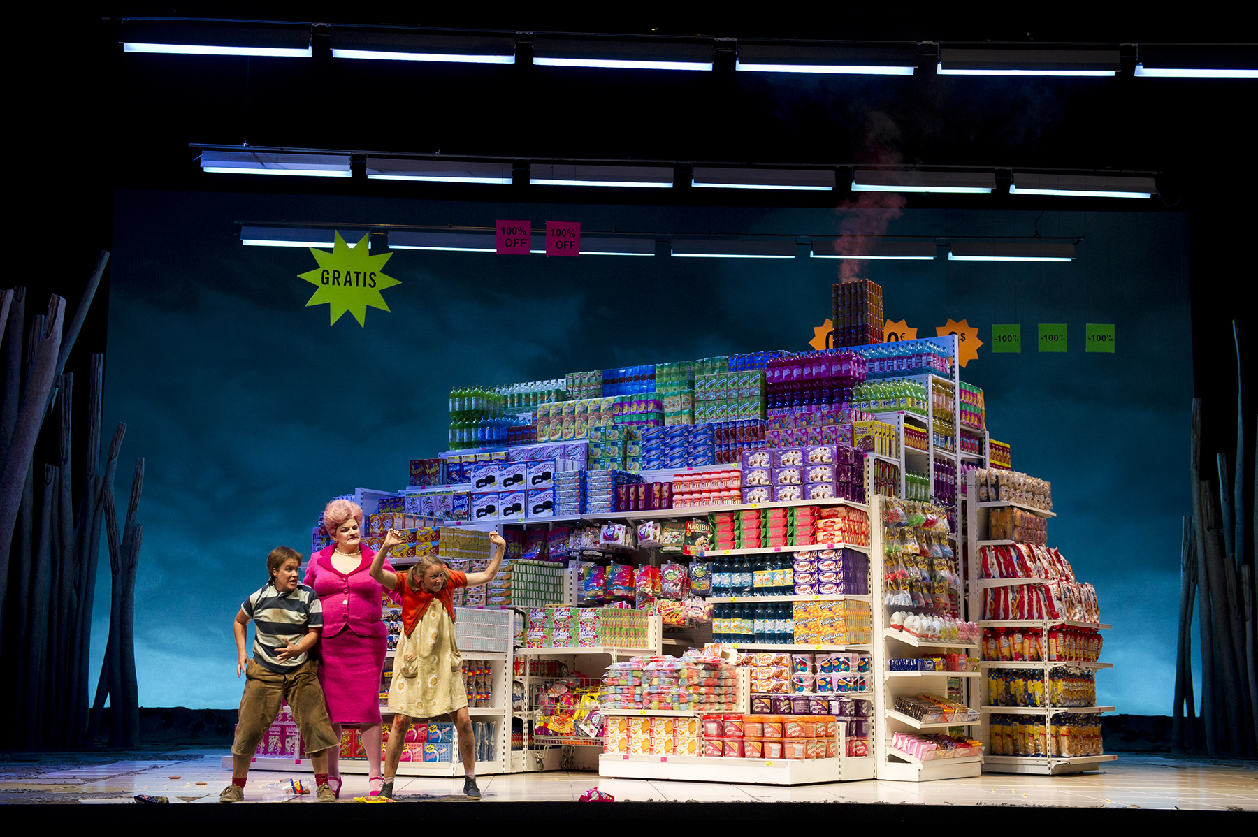 Laurent Pelly first Glyndebourne production was ‘brilliantly imagined and thought-provoking’ Hänsel und Gretel’ (The Times) which premiered in 2010. This update on the classic fairytale swapped the gingerbread house for an elaborate supermarket set, packed with sweets.