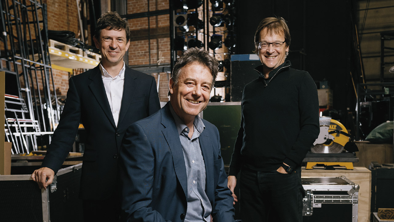 Backstage with (L-R) Richard Davidson-Houston, Gus Christie and Stephen Langridge, October 2022