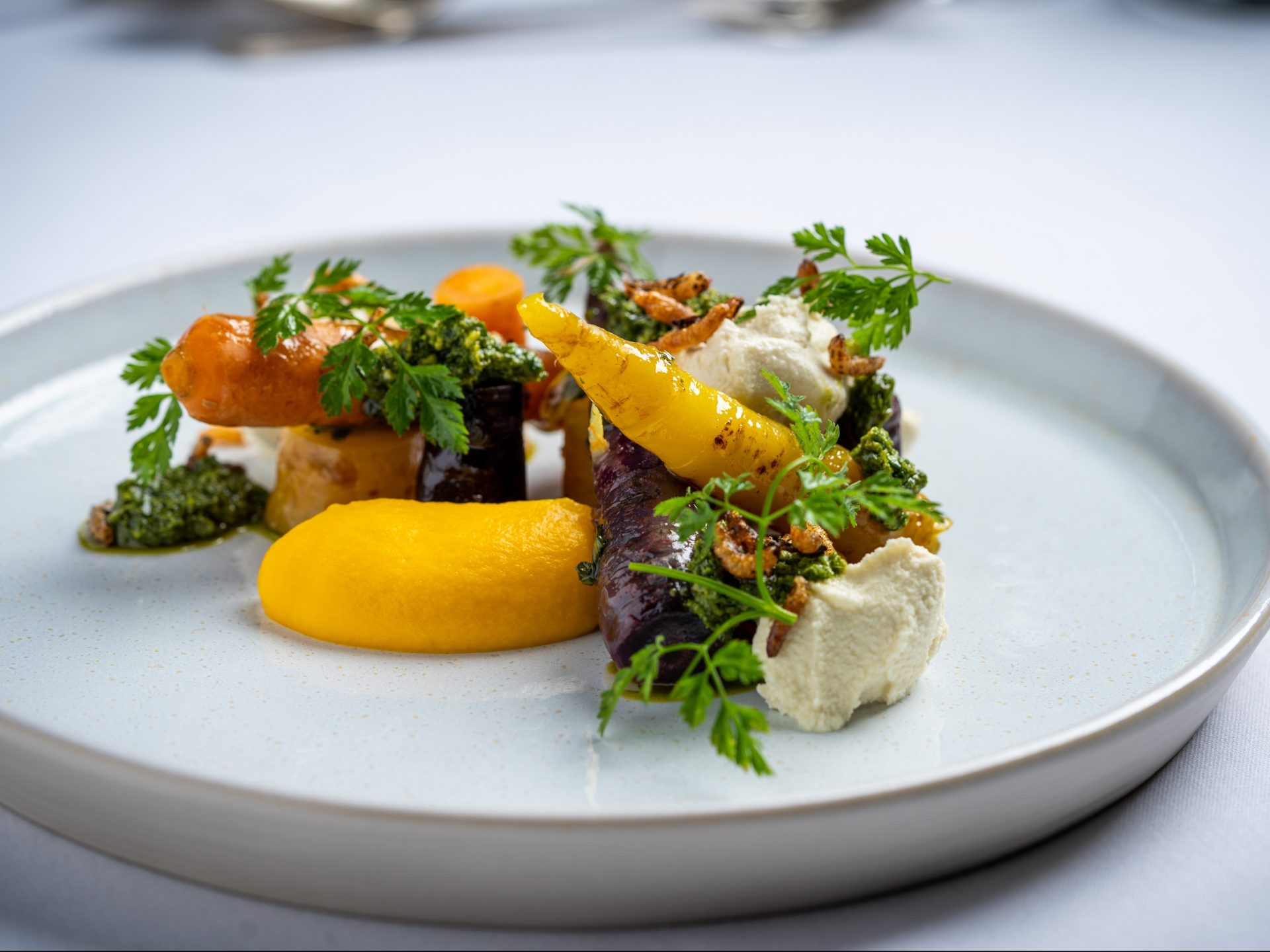 Above: Heritage carrot, almond ricotta & lovage dressing, one of our popular plant-based dishes. Photo: Steven Groves