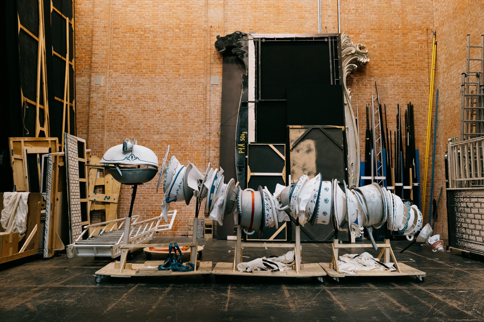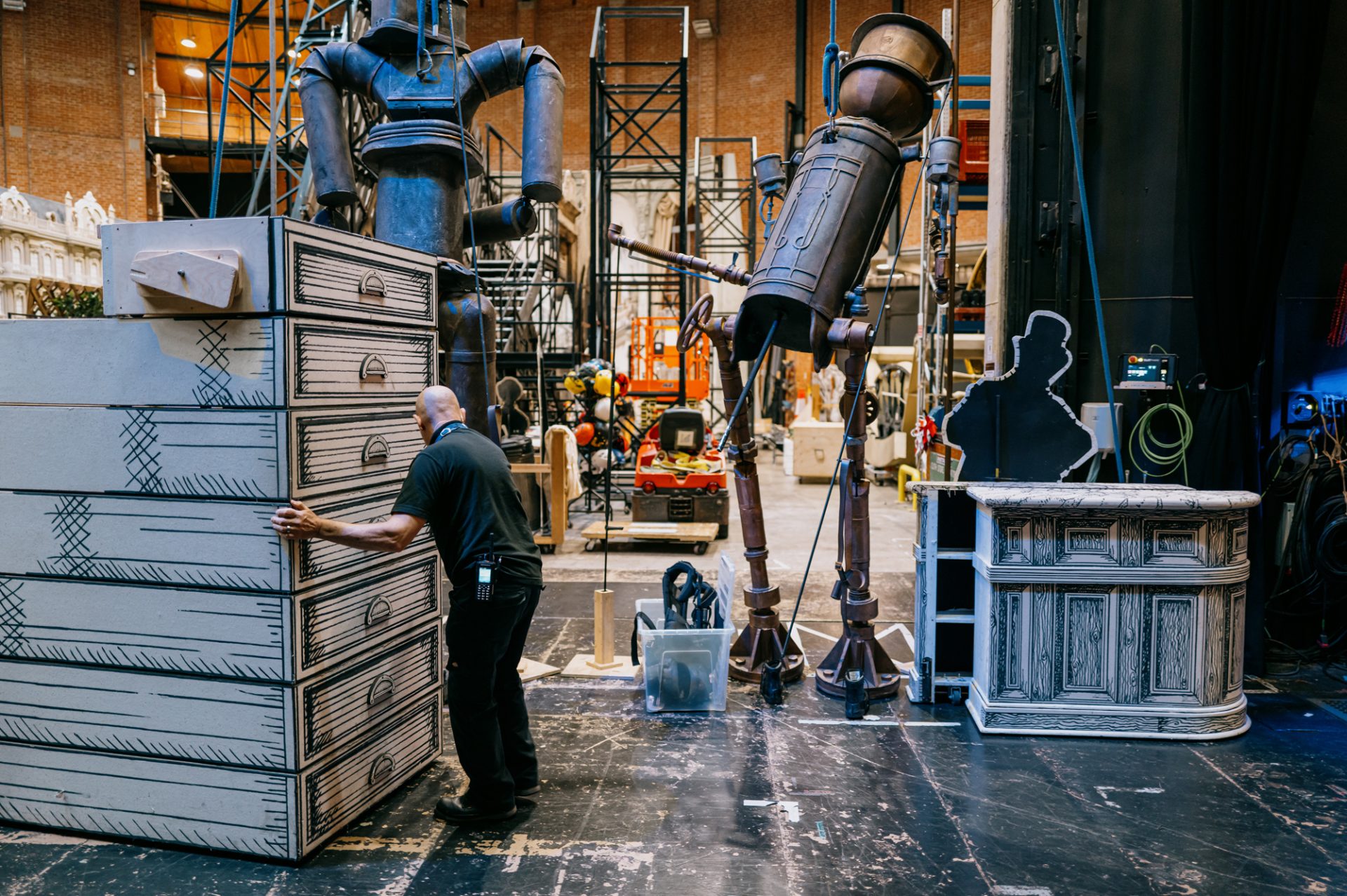 Moving scenery in the backstage dock