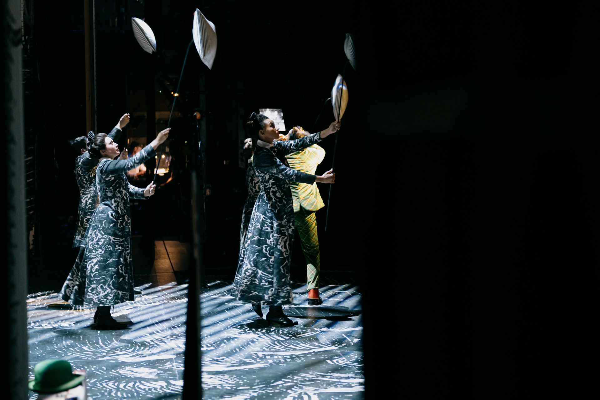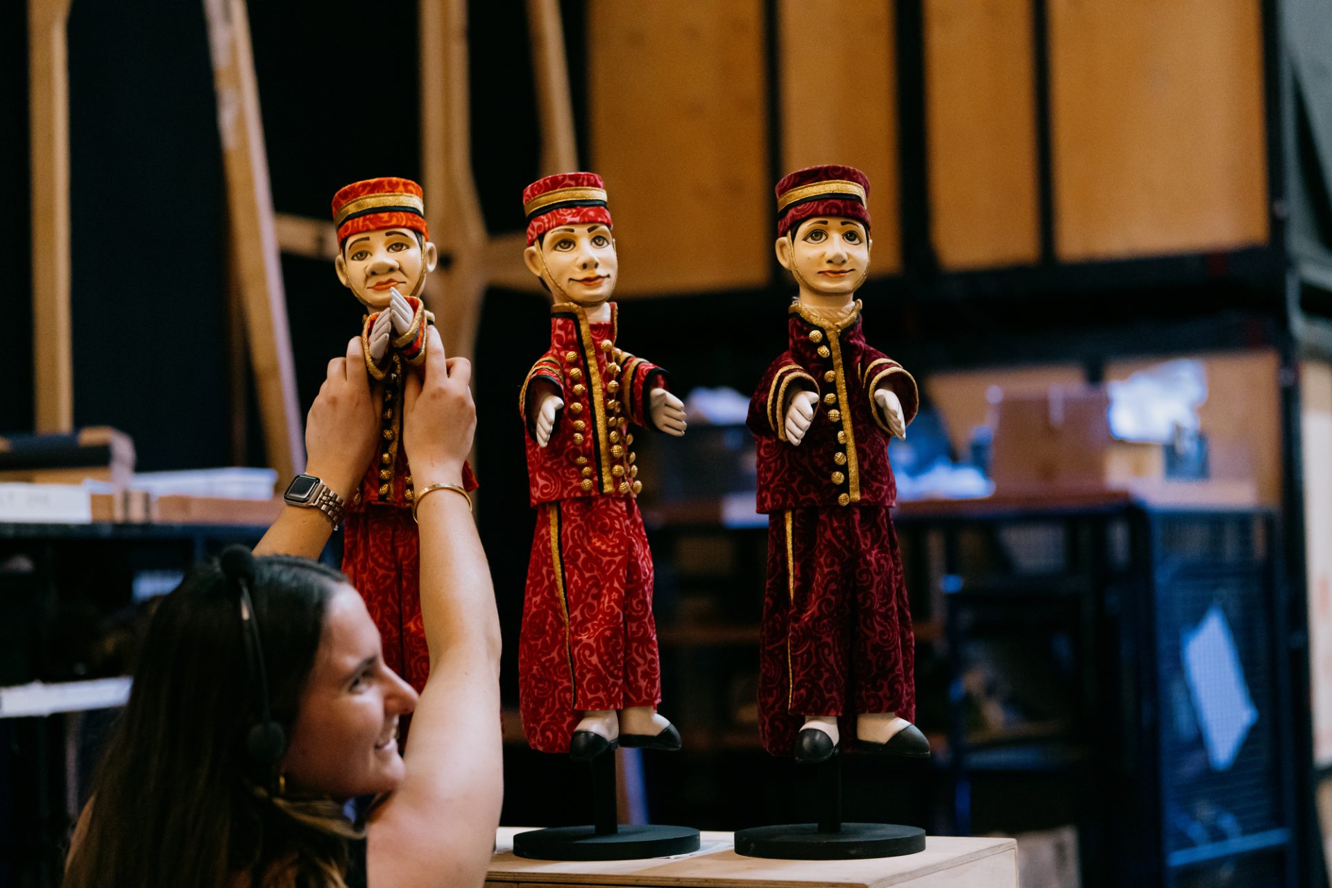 Puppeteers in a scene from Act I