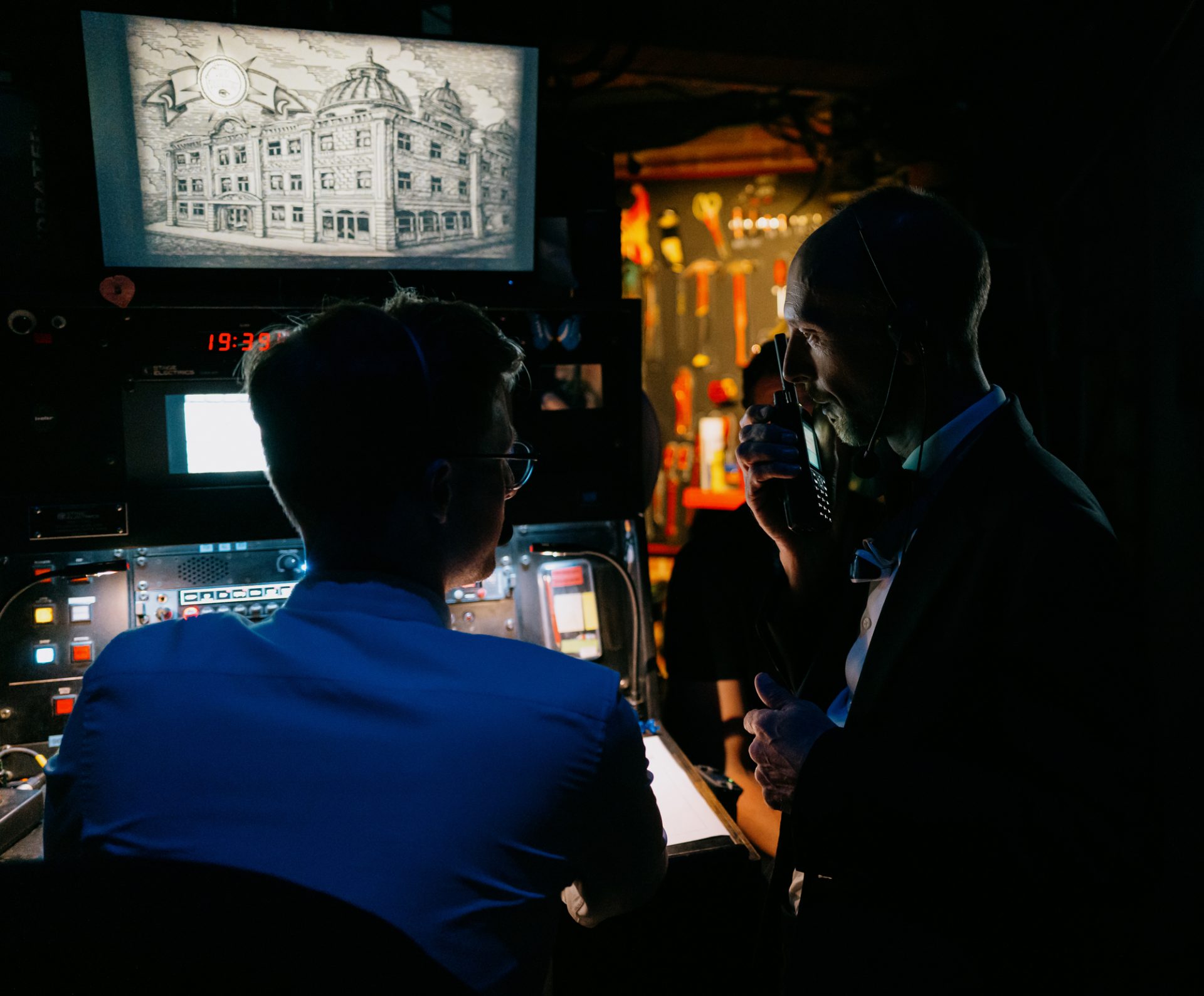 Deputy stage manager Robert Coupe and stage manager Ben Sedgwick at the prompt desk