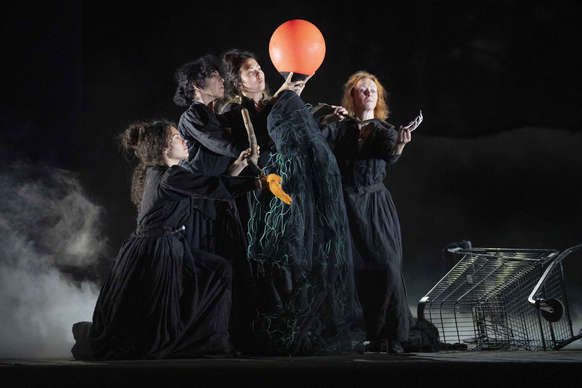 Avis (Lauren Fagan) and Thurza (Karis Tucker), with members of the Glyndebourne chorus
