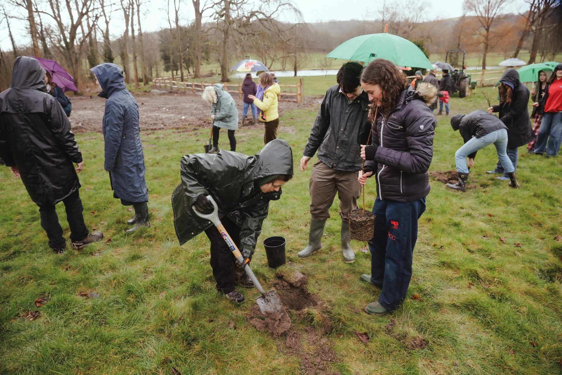 Tree planting in the Uprising Grove, February 2025. Photo: Pablo Strong.