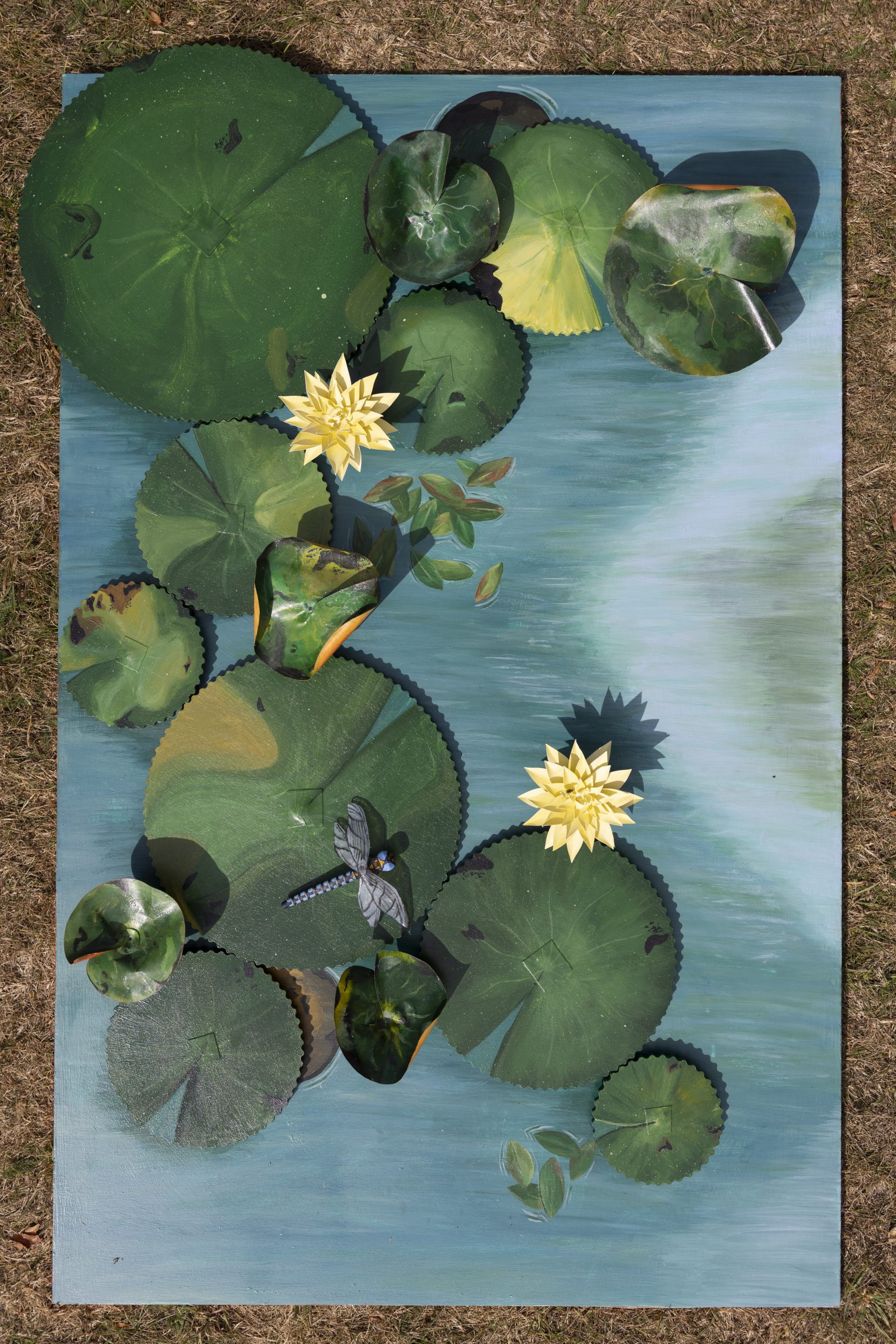The Dance of Lilies – Wood, paper, clay, wire, MODROC, acrylic paint (61cm x 96cm)