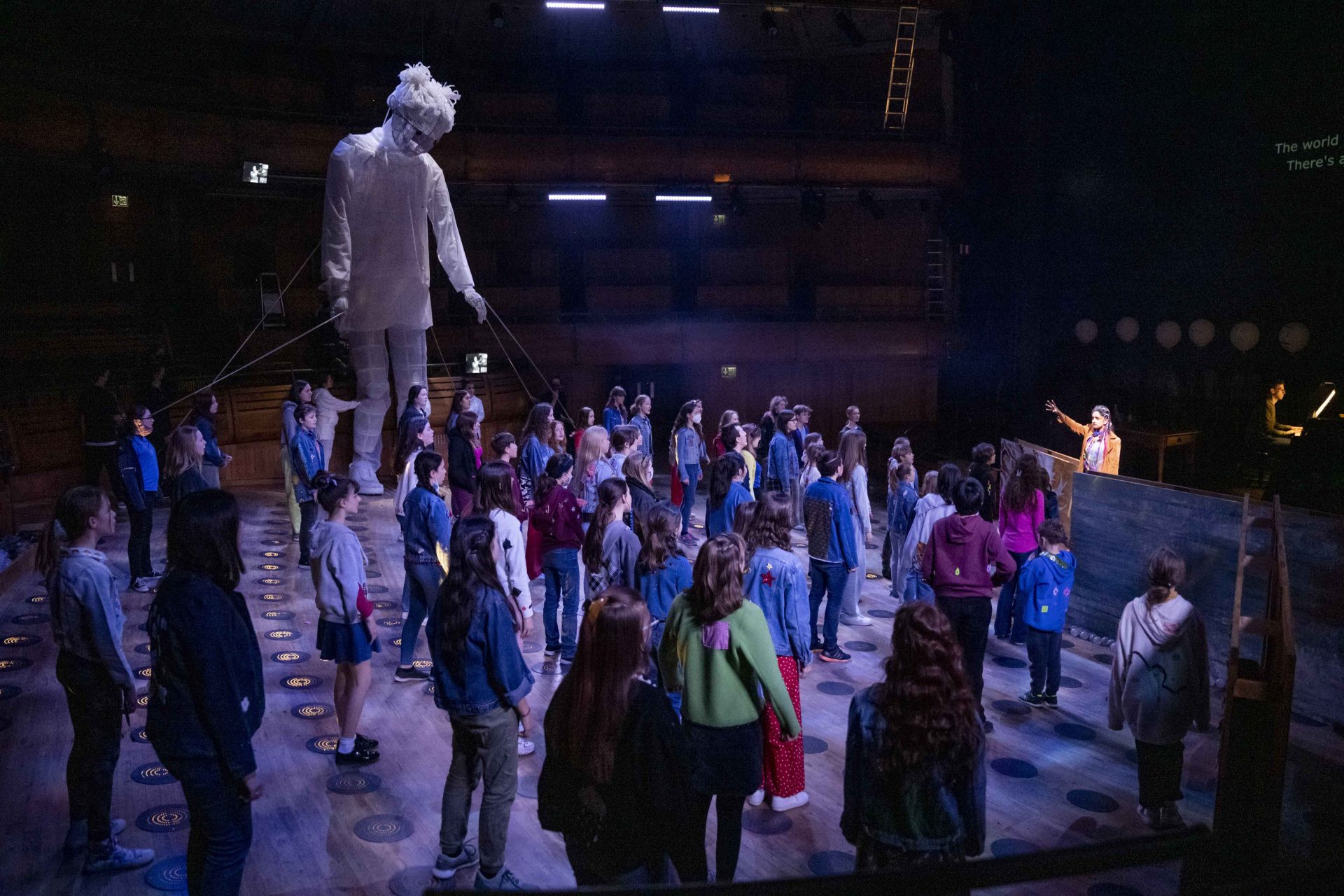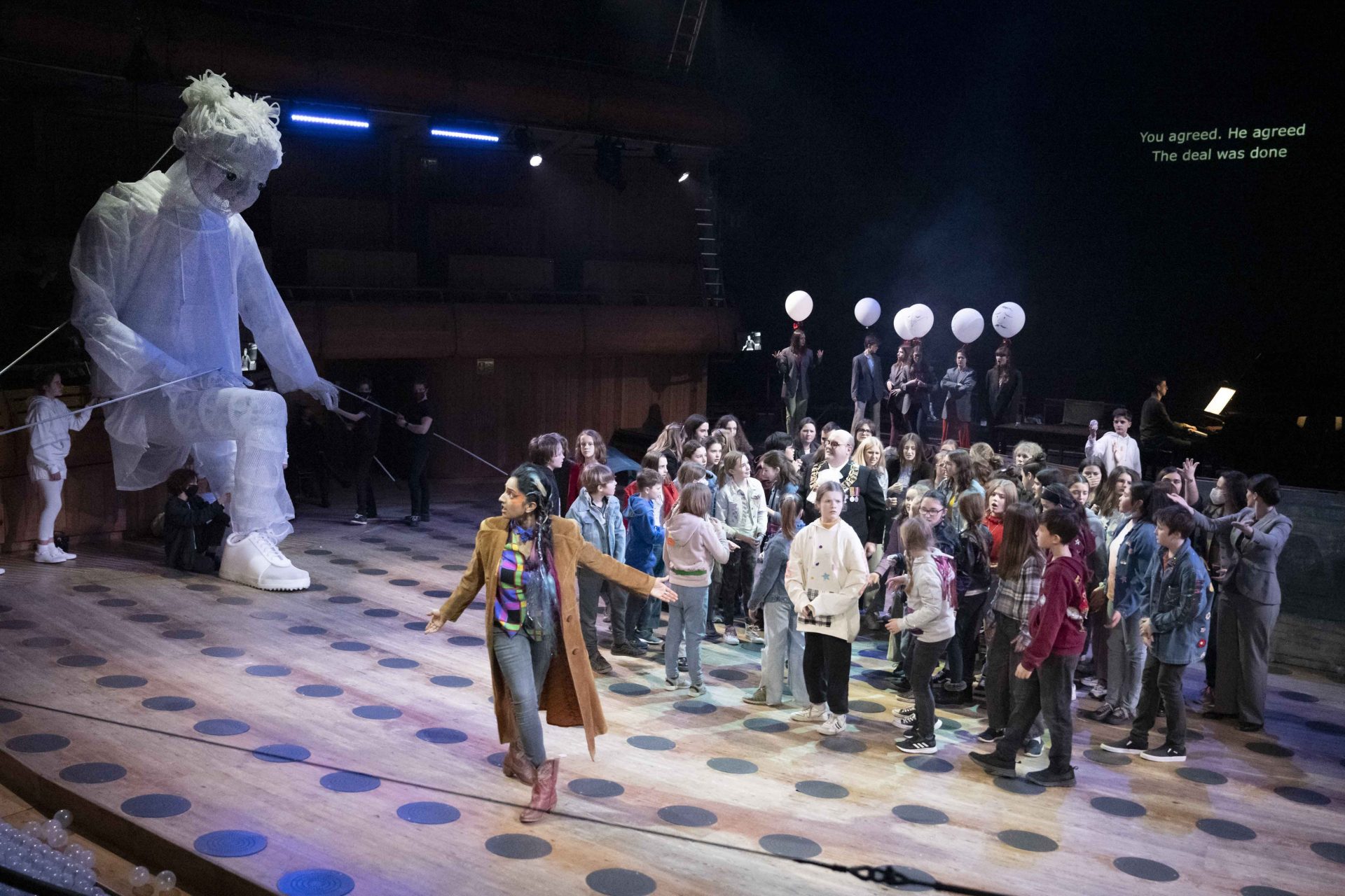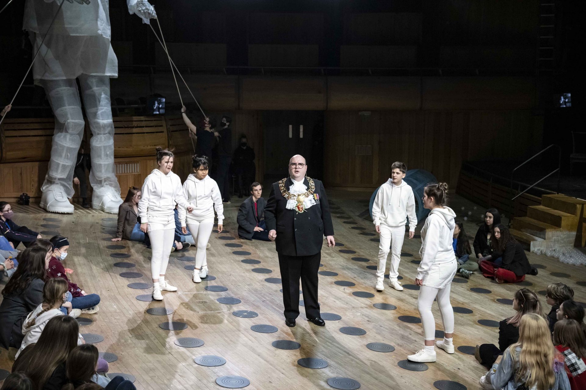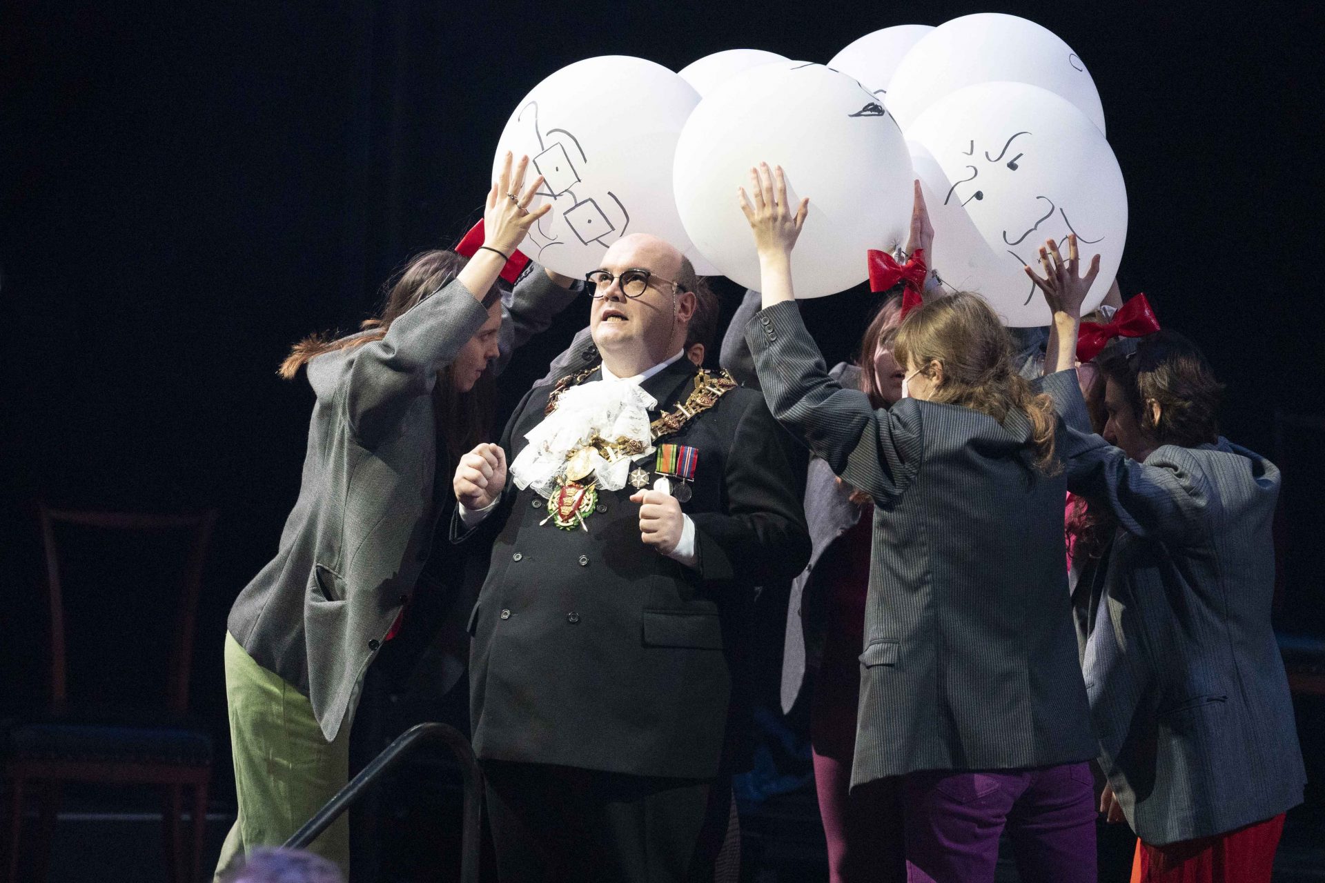 Mayor (Adam Marsden), Lonely Child (Maggie Marshall, Fin Metcalfe-Martin, Andrea Palma Lizardo, Minnie Wood) and members of Glyndebourne Youth Opera