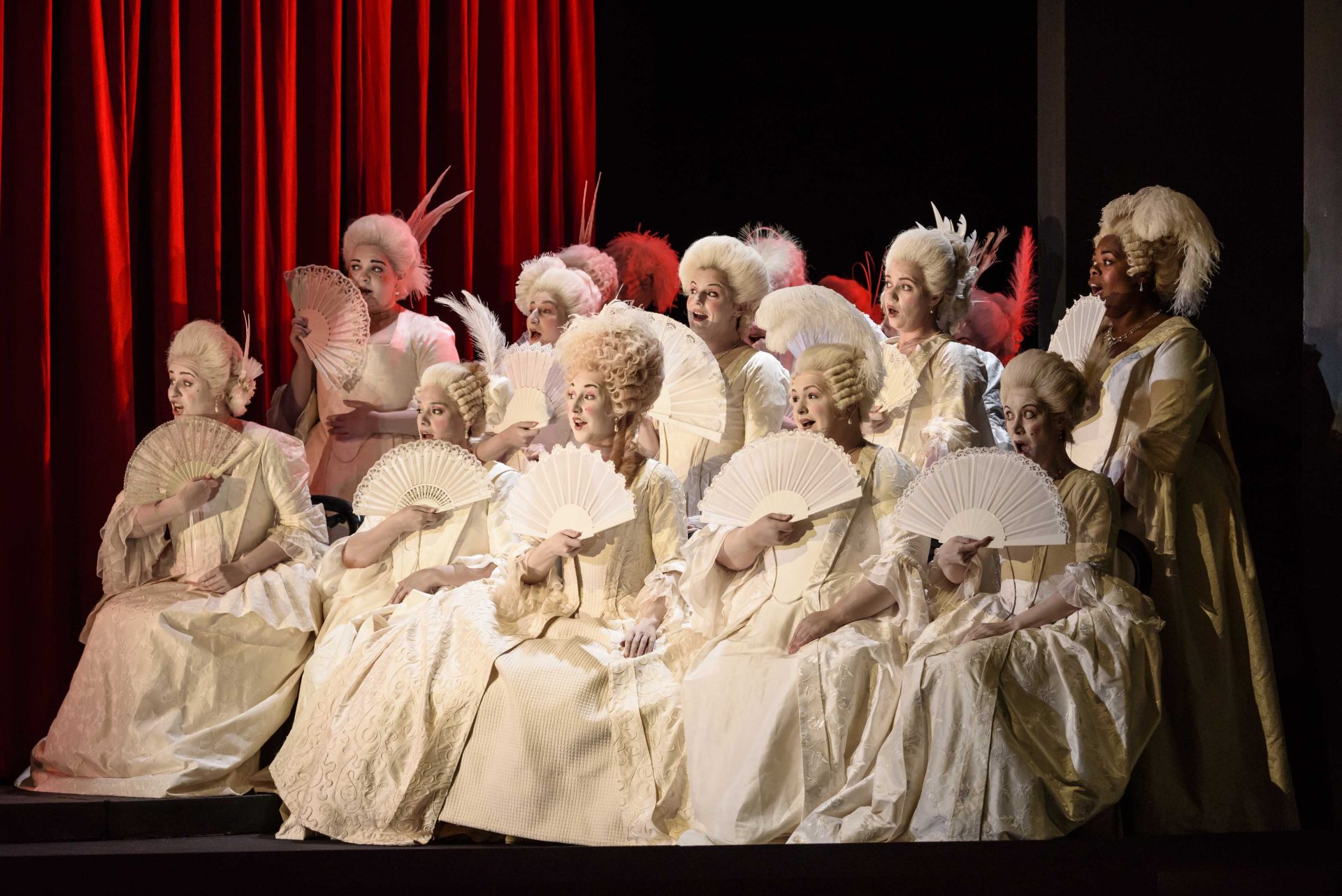- Colour (e.g. colour of the costumes contrasted to the coloured/black back drop)