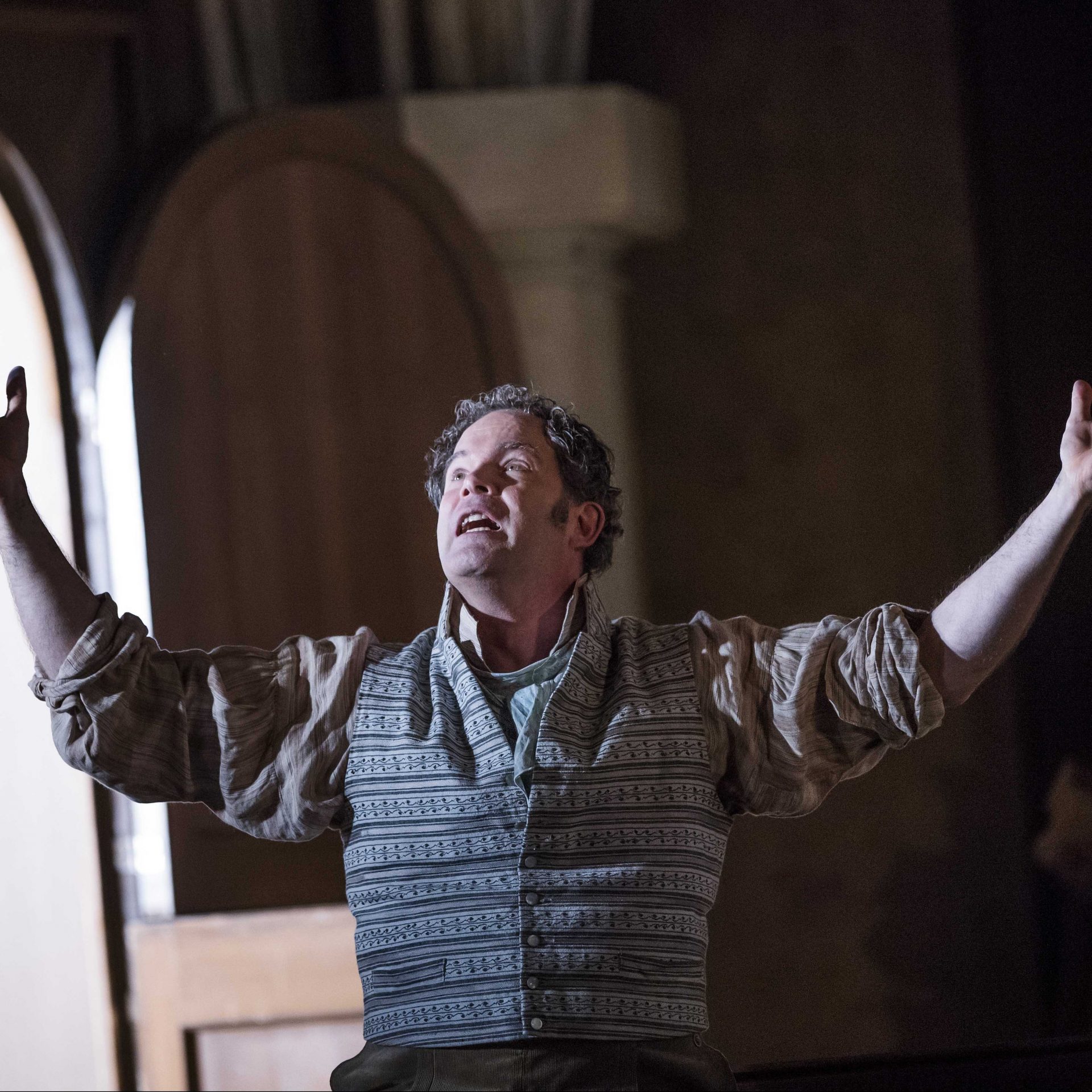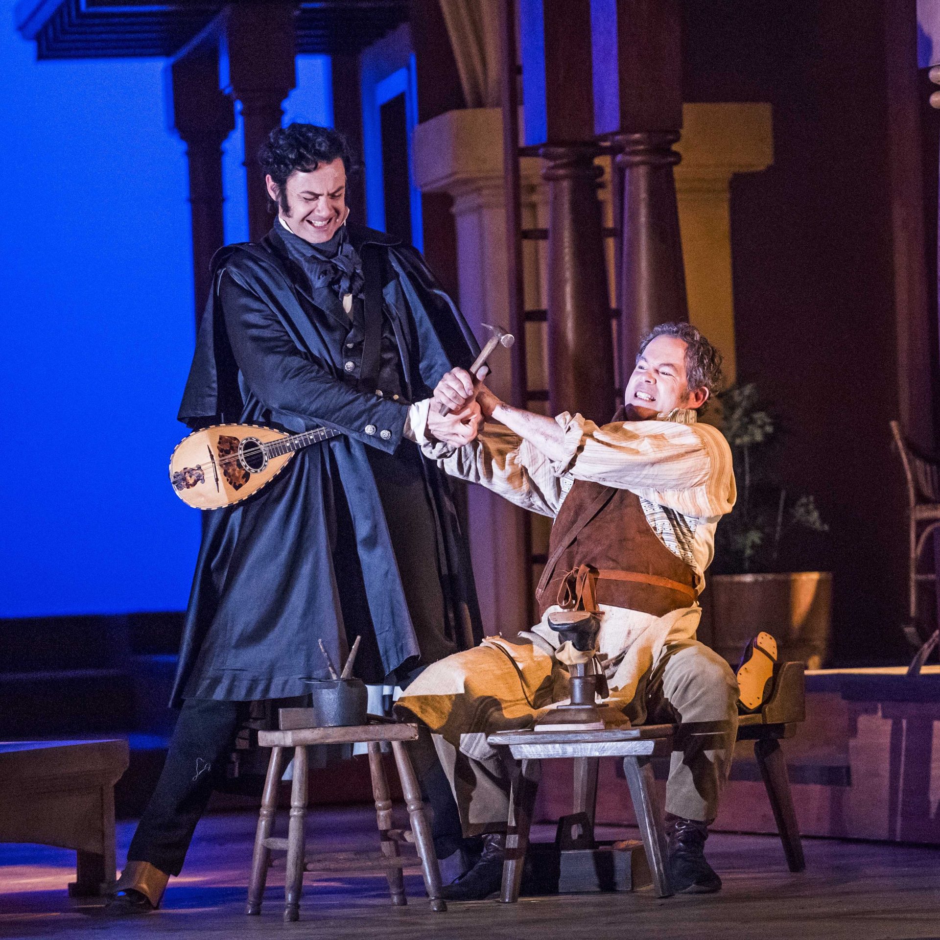 Beckmesser arrives by Eva’s window to serenade her, but Magdalene appears there as stand-in. When Beckmesser begins singing, Sachs launches into a hearty cobbling song. Sachs then agrees to drive a nail only when Beckmesser breaks a rule of style.