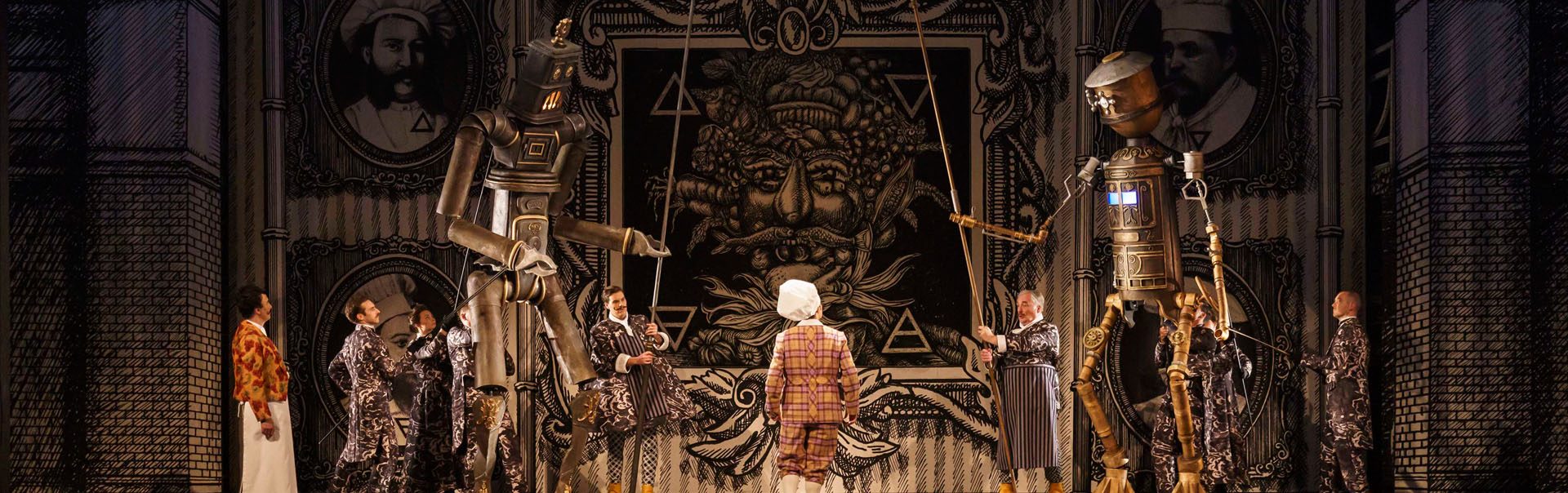 Both Mozart and Schikanader were Freemasons, and the plot of Die Zauberflote is steeped in Masonic symbolism, ideals and imagery. Sarastro and his order embody all the values of the Masons – principles based on wisdom, reason and nature – while the Queen of the Night is seen by many to represent the Empress Marie Theresa who was strongly anti-Masonic and whose Catholic faith they viewed as little more than superstition. While the Masons traditionally excluded women, Mozart’s opera contemplates a more progressive order in which women (symbolised by Pamina) are also tested and welcomed if found worthy.