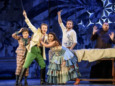 Outside Dr Bartolo’s house, Count Almaviva arrives disguised as Lindoro, an impoverished student, to serenade and win Rosina, who is confined indoors. The Count hopes that Rosina will love him for himself and not for his wealth and status. Figaro, the town barber, jack-of-all-trades and busybody, arrives and tells the Count that Rosina is not Bartolo’s daughter but his ward and that Bartolo himself plans to marry her. Figaro suggests that the Count gain entrance to Bartolo’s house by disguising himself as a soldier with orders to lodge there.