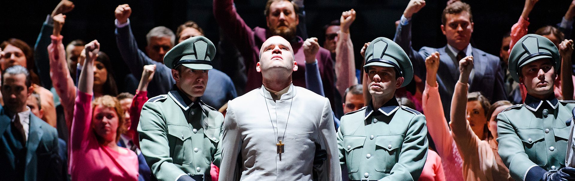 Severo and his men arrive to take Poliuto to the arena for his execution. Paolina announces her conversion to Christianity and asks to die with her husband. Severo urges her to reconsider, but she refuses. Callistene and his priests demand the couple’s execution. Poliuto and Paolina go off to face death together.