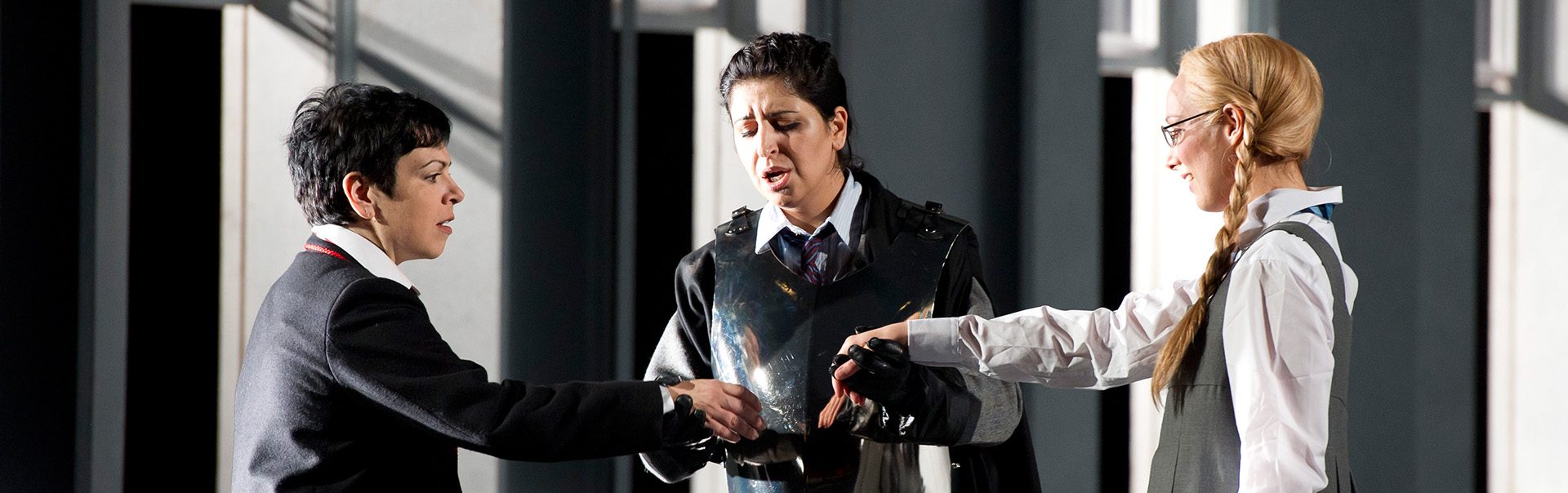 Armida is about to kill Almirena. Rinaldo, still a prisoner, is powerless to prevent her, when suddenly Goffredo and Eustazio come to the captives’ aid. Goffredo, Almirena and Rinaldo rejoice at being finally reunited.