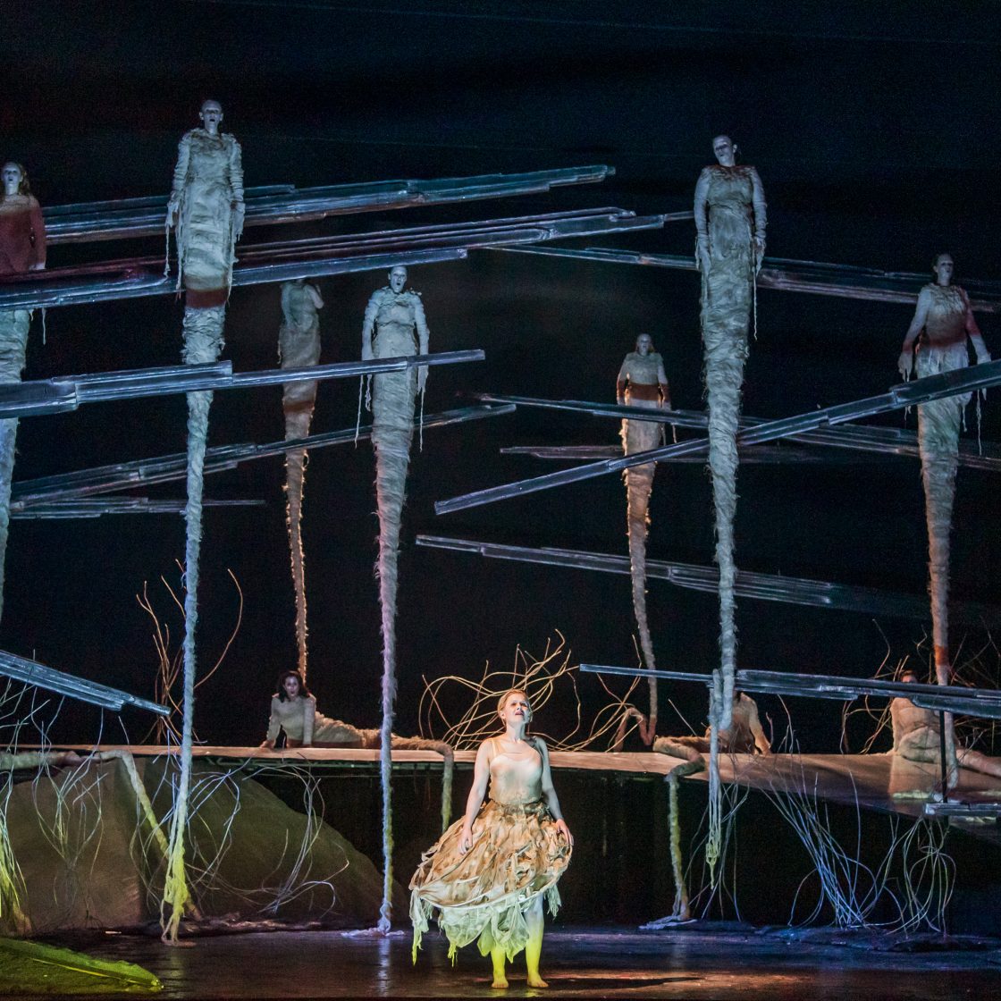 - At once evocative and unsettling, this production collides two contrasting worlds in Rae Smith’s elegant designs. Rusalka’s forest home is a dappled space of sunshine and shadows, full of strange woodland creatures, while the Prince’s court is a world of sleek modernity and sophistication – a world of man.