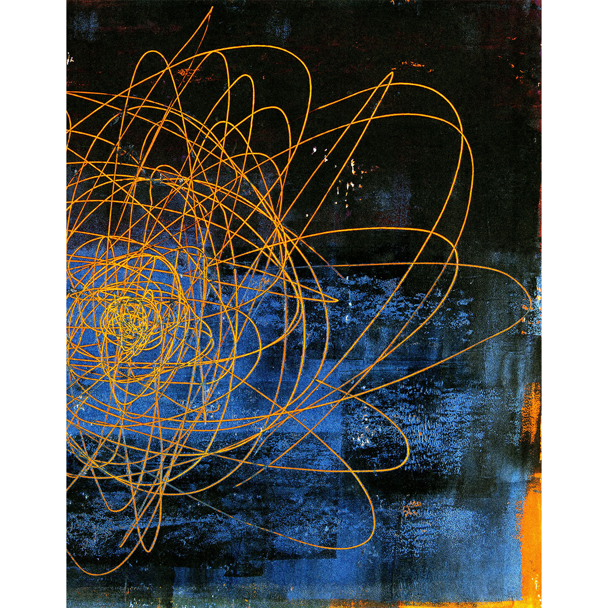Pendulum driven pencil and ink, etched acrylic paint on paper