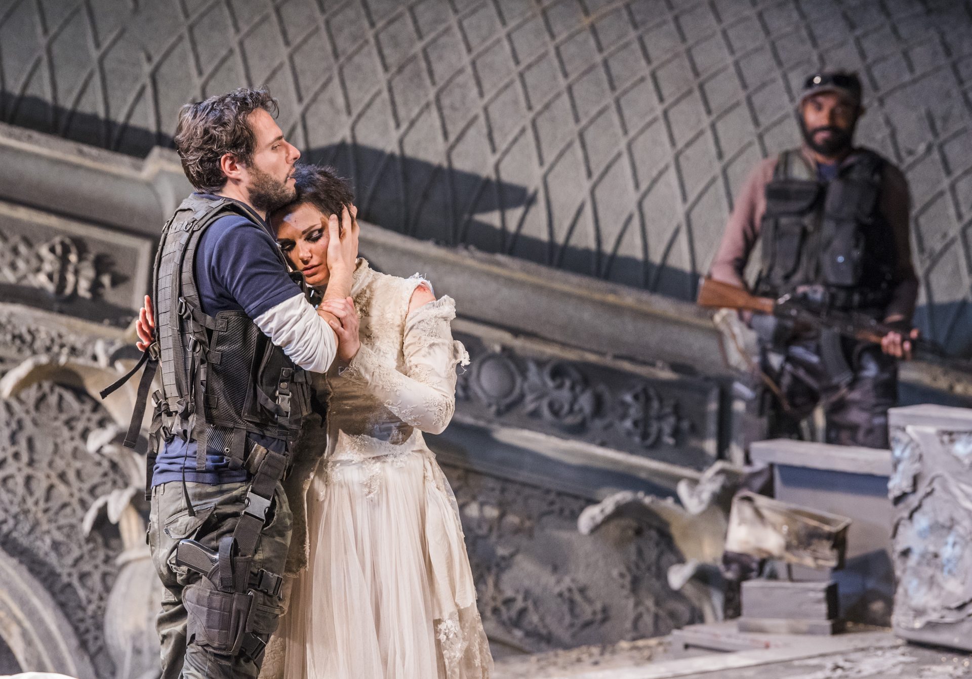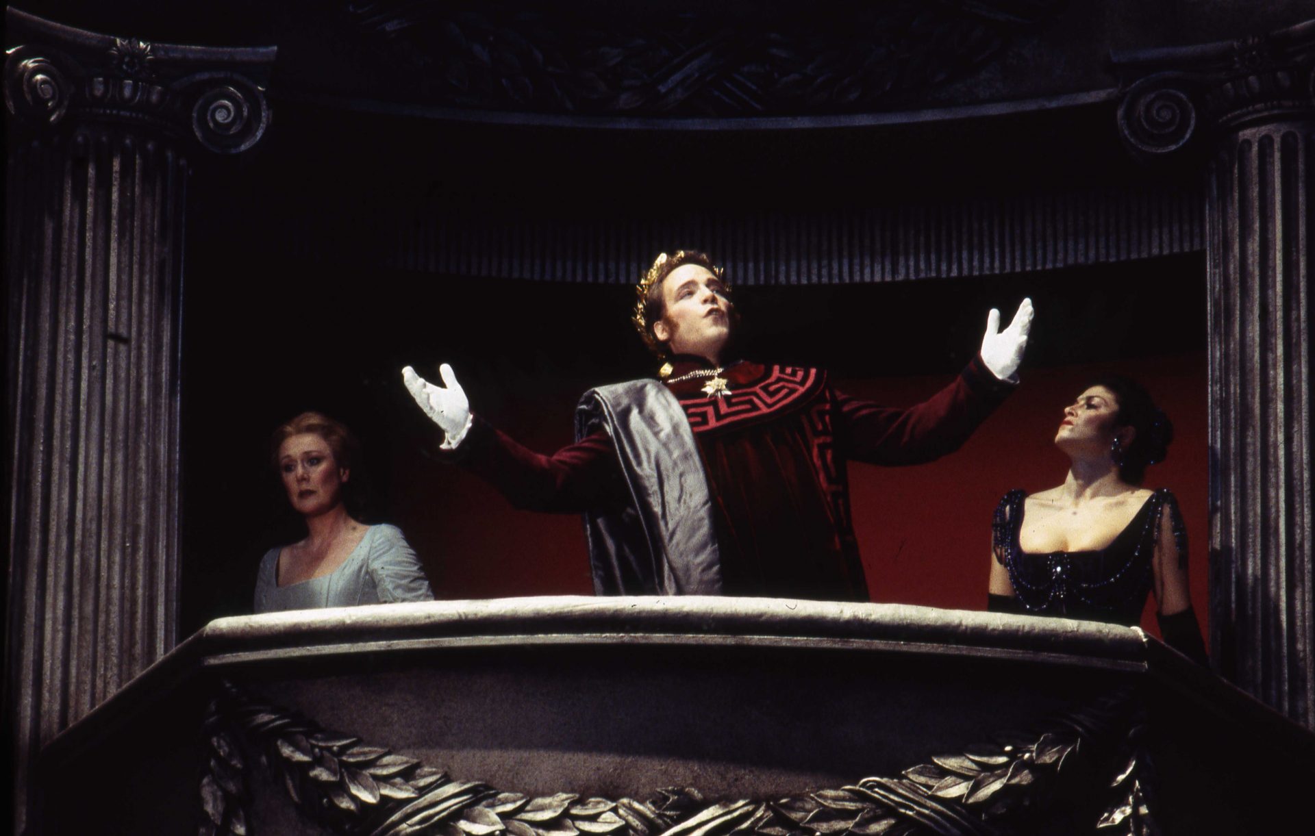 Diana Montague as Andromaca, Jorge Lopez-Yañez as Pirro and Anna Caterina Antonacci as Ermione. Photo: Guy Gravett. 1995