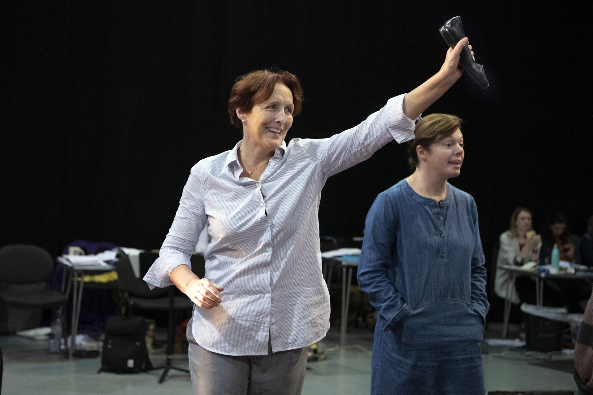 From day one the director Fiona Shaw wants to create a rehearsal space, which enables improvisation. Our stage management team provide a constant array of props and things we can work with in the space; a plastic frog, a bucket of coal, 50 clothes bags, cigarettes and an IV drip!
