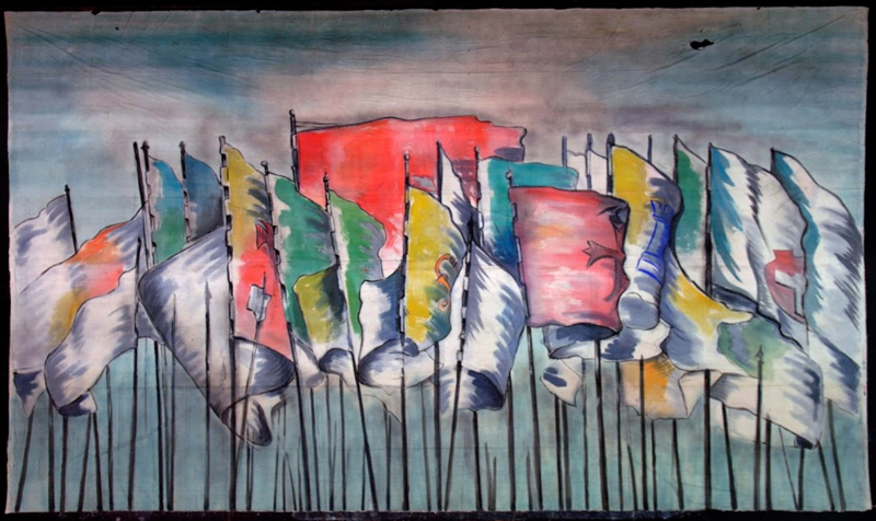 The vibrantly coloured original backdrop from the final act of the 1938 production of Macbeth was rediscovered in a storeroom at Glyndebourne in 2006 and is pictured below.