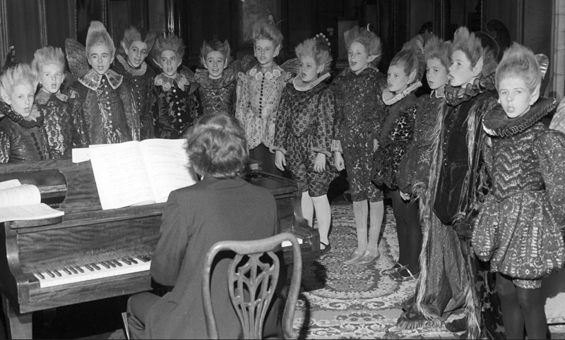 Since 1981 the fairies have been played by members of the Trinity Boys Choir. Below you can see the 1981 choir in rehearsals for the original production: