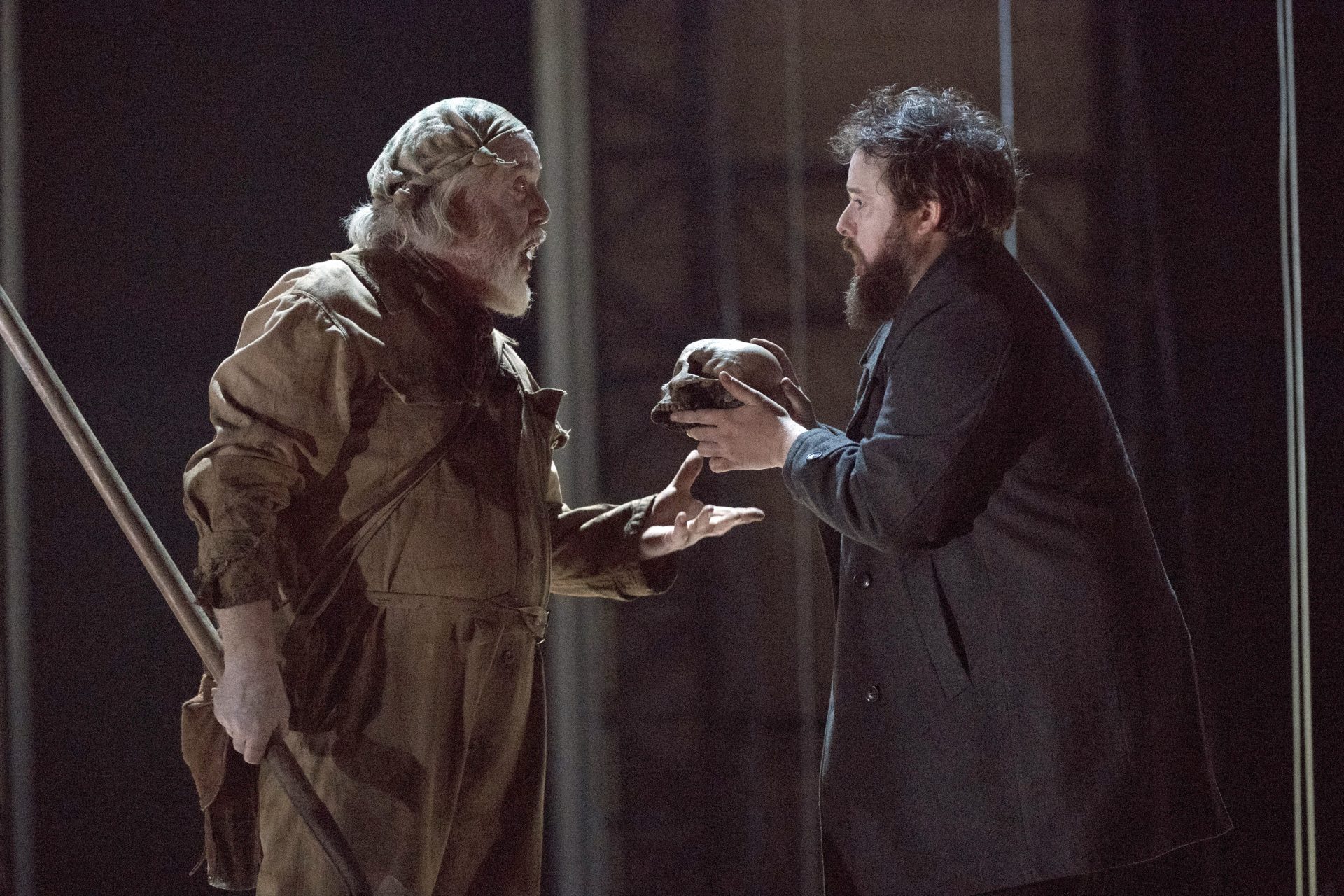 Gravedigger (John Tomlinson) and Hamlet (Allan Clayton) in Hamlet, Festival 2017. Photo: Richard Hubert Smith