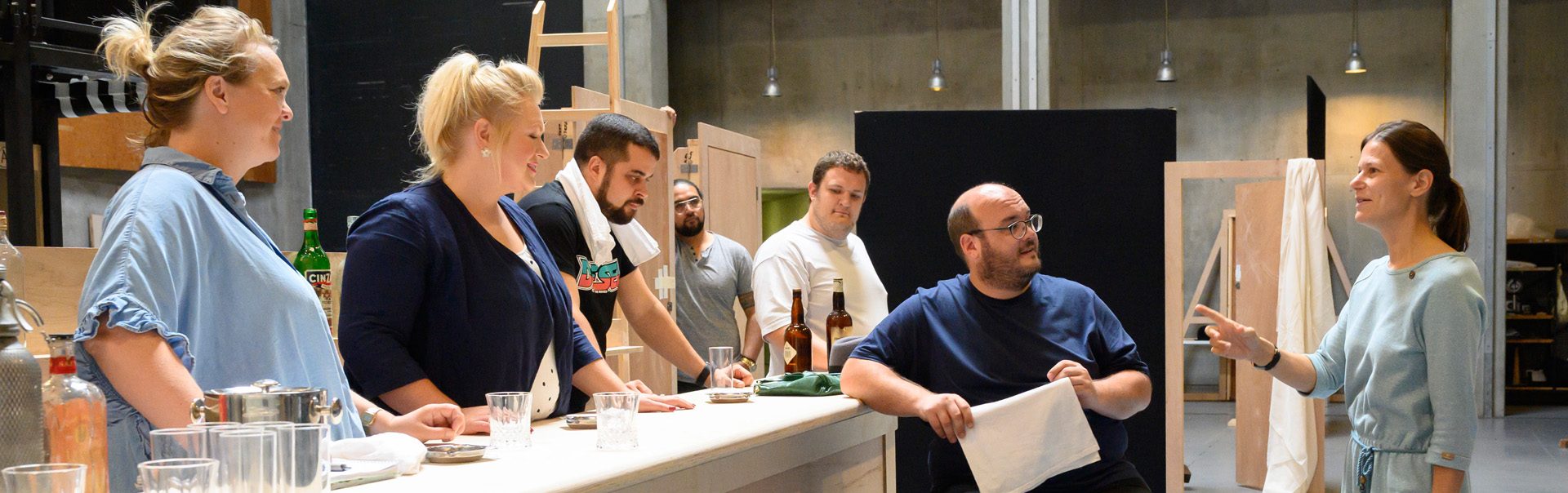 Vuvu Mpofu (Gilda), Matteo Lippi (Duke of Mantua) and director Christiane Lutz