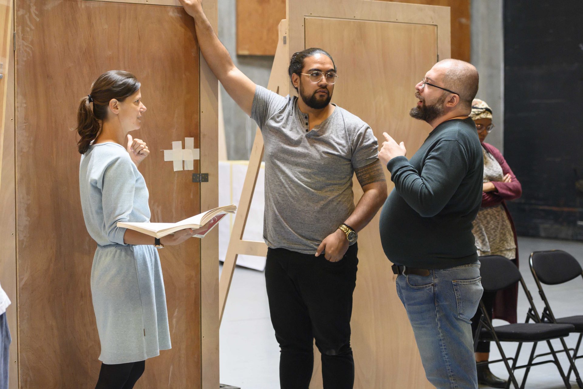 Nikoloz Lagvilava (Rigoletto), director Christiane Lutz and Adam Marsden (Count Ceprano)