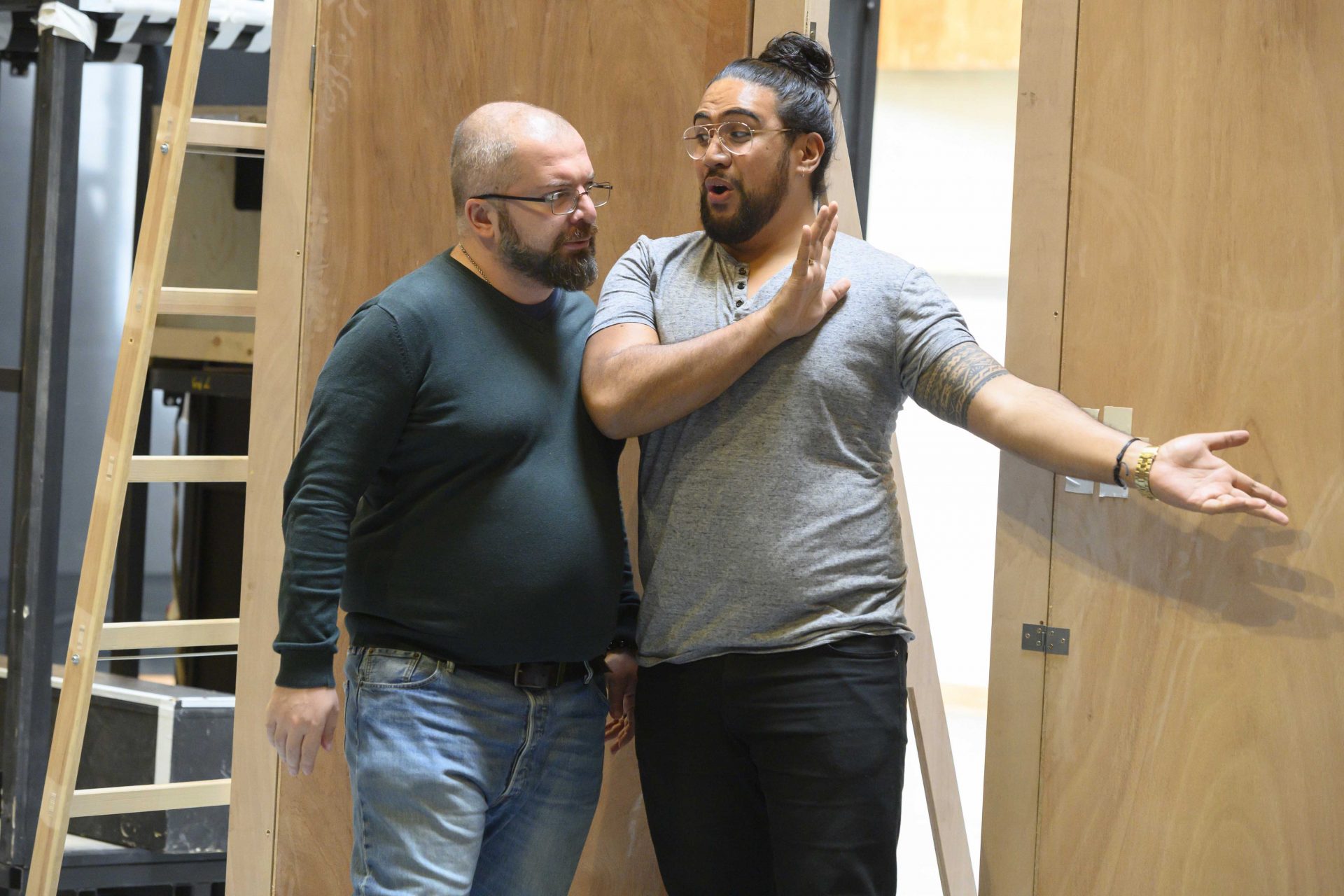 Director Christiane Lutz, Benson Wilson (Marullo) and Nikoloz Lagvilava (Rigoletto)